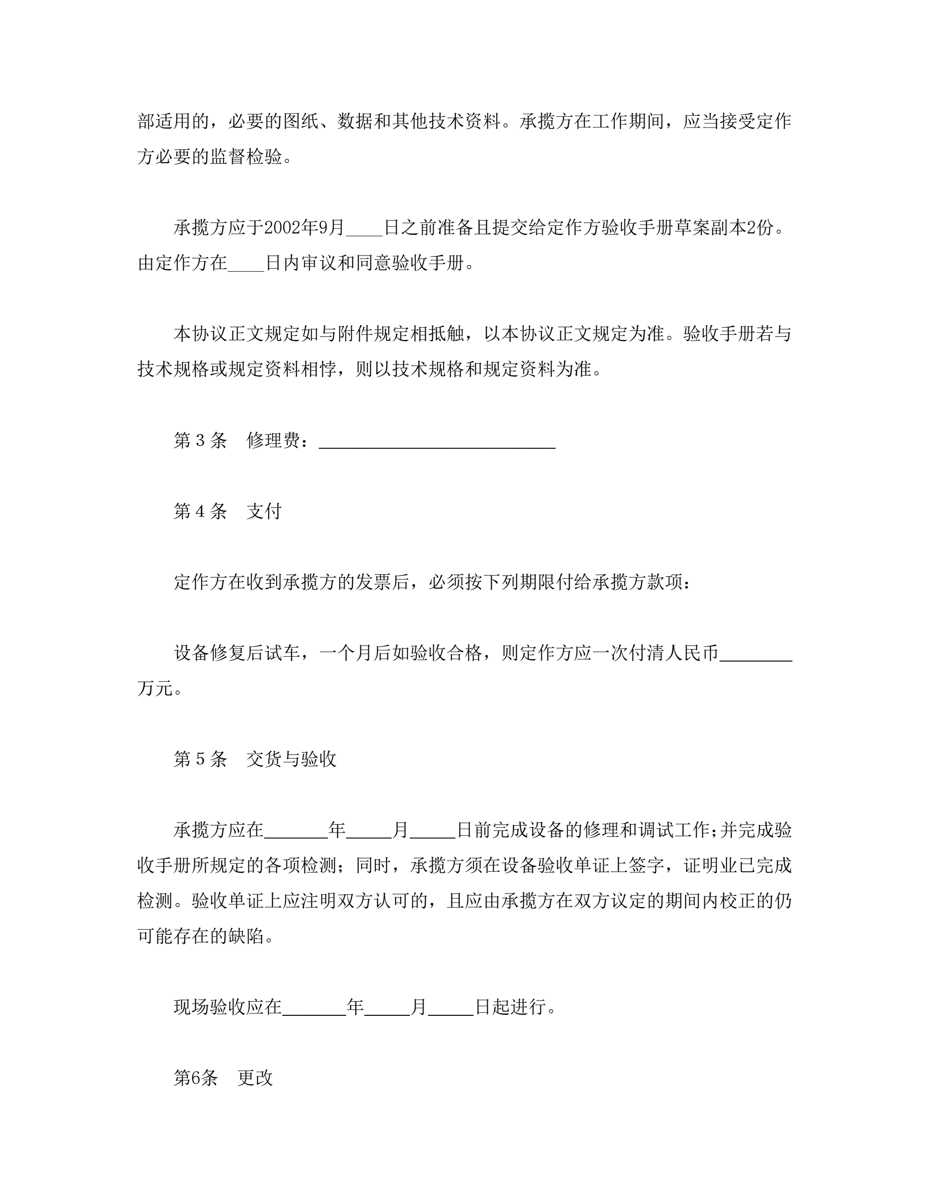 设备修理合同