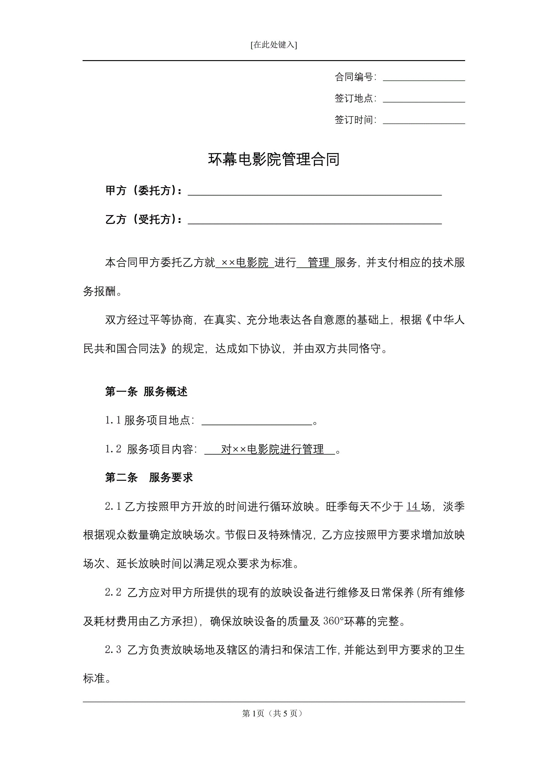 环幕电影院管理合同