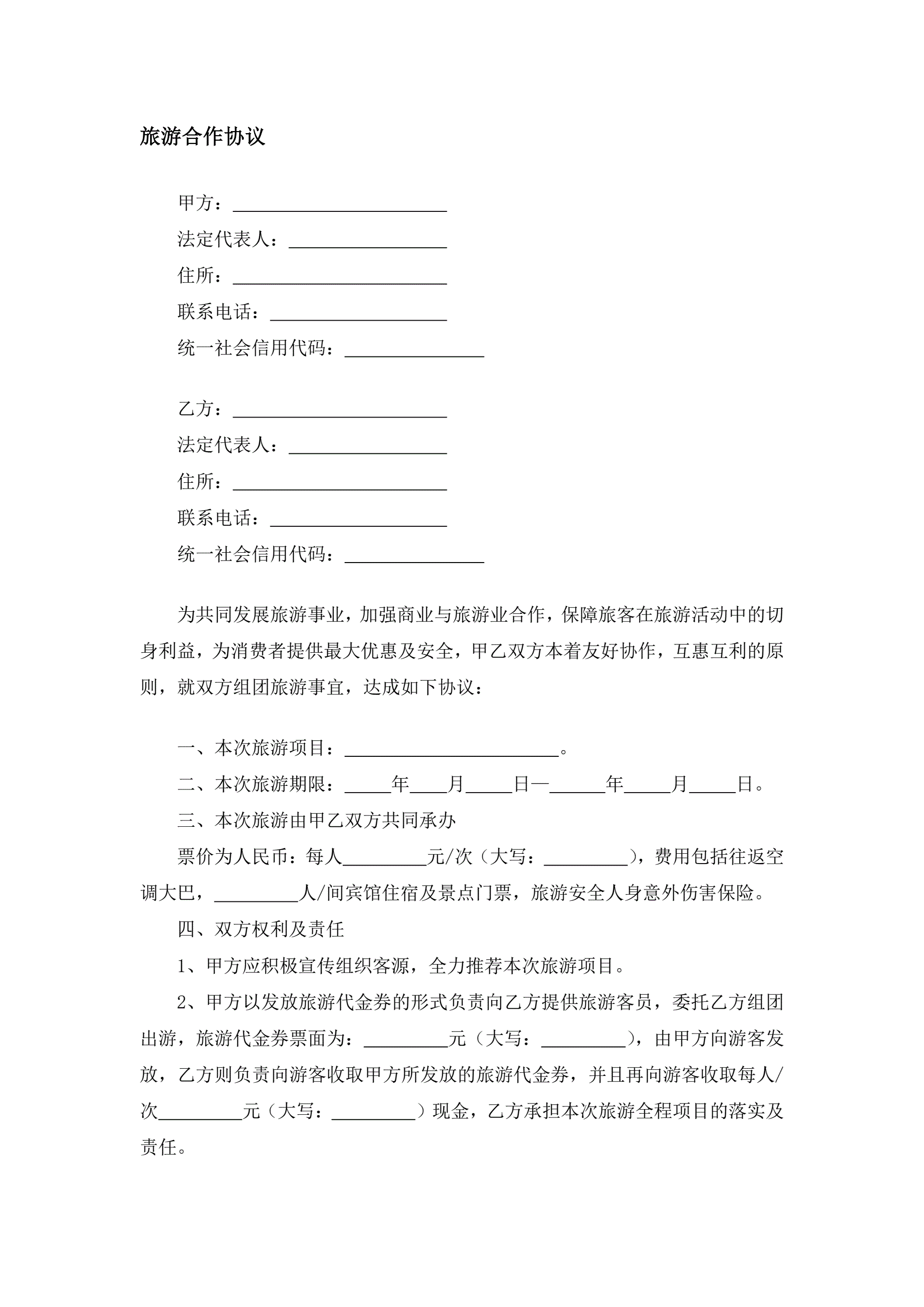 >旅游合作协议