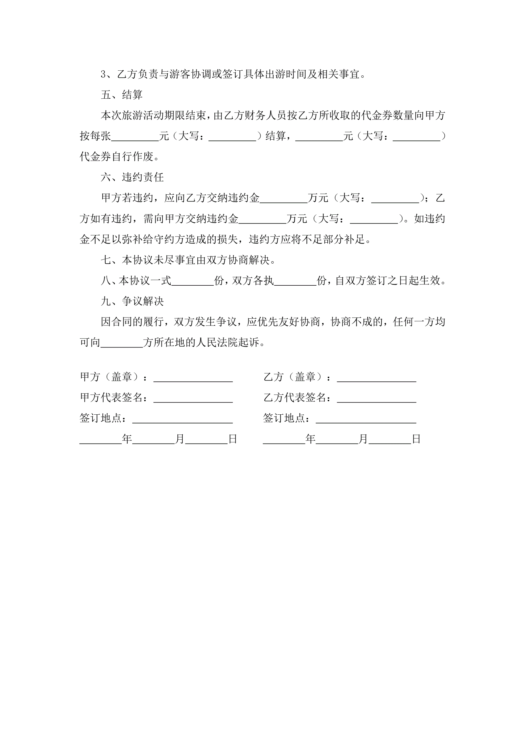 旅游合作协议