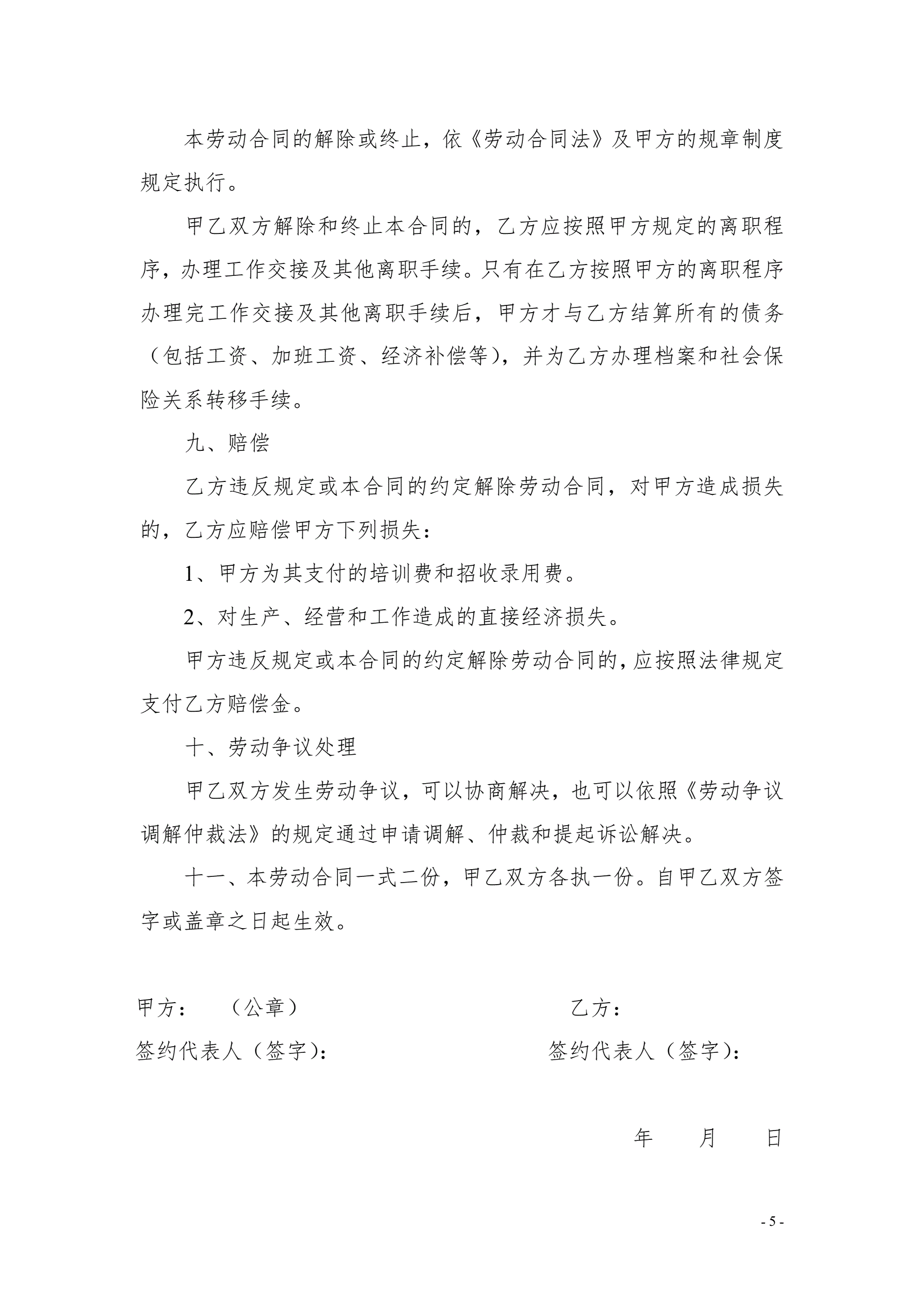 6劳动合同书范本5页