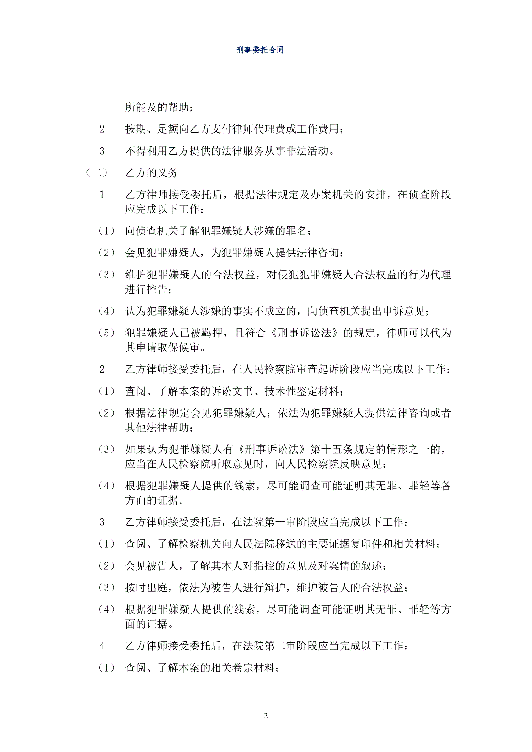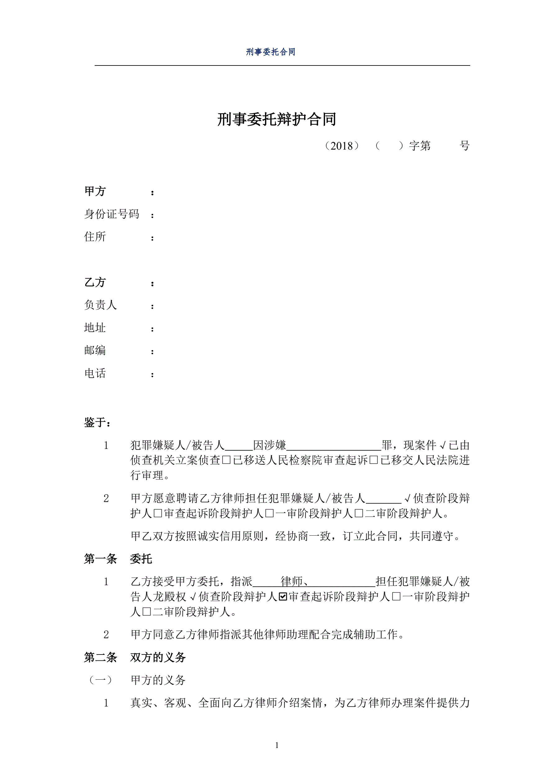 刑事委托辩护合同