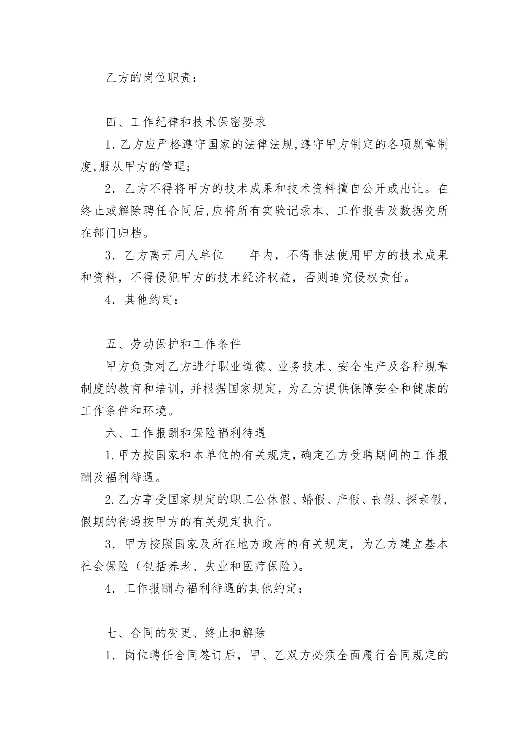 >科研、研发人员聘用合同