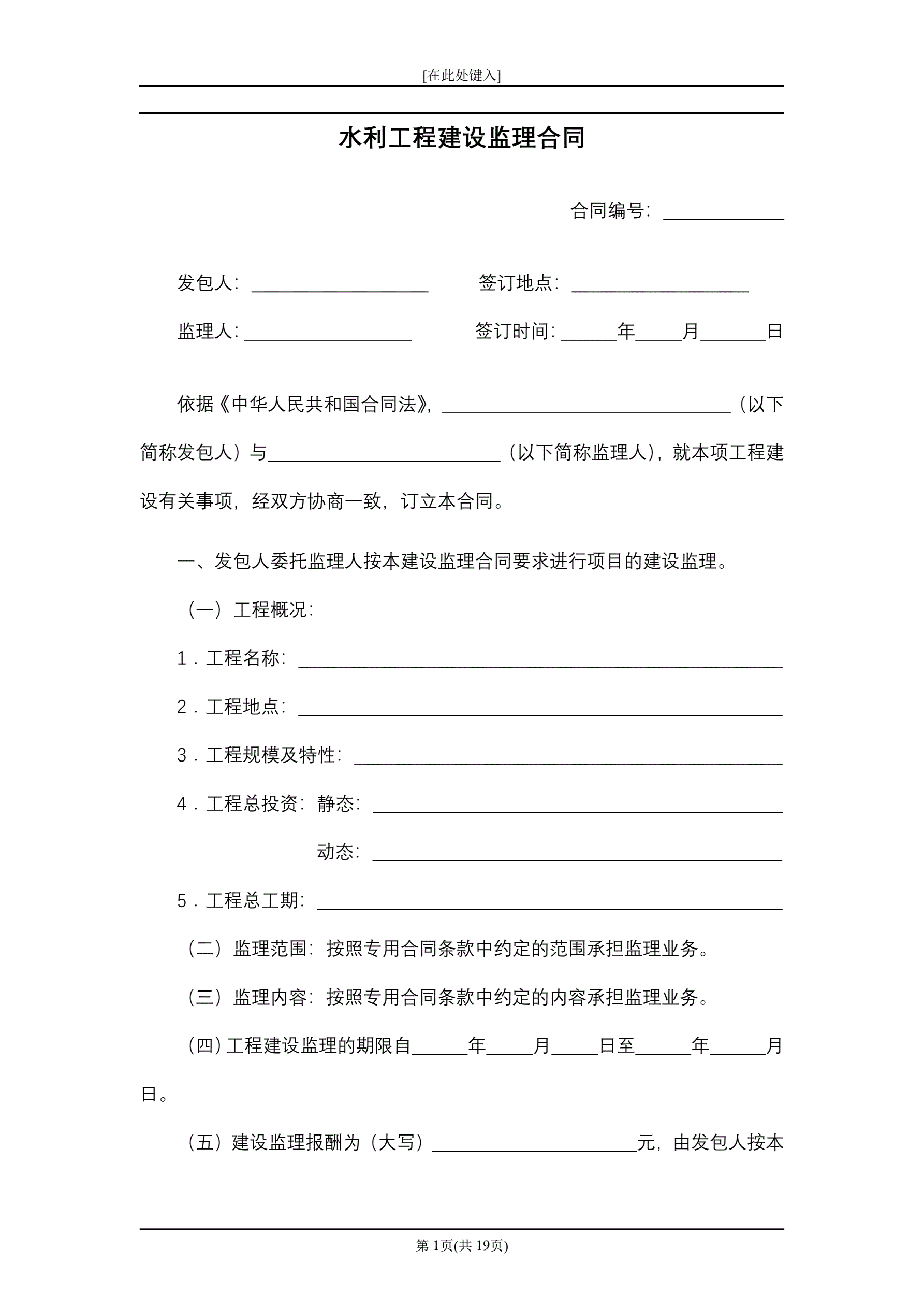 >水利工程建设监理合同