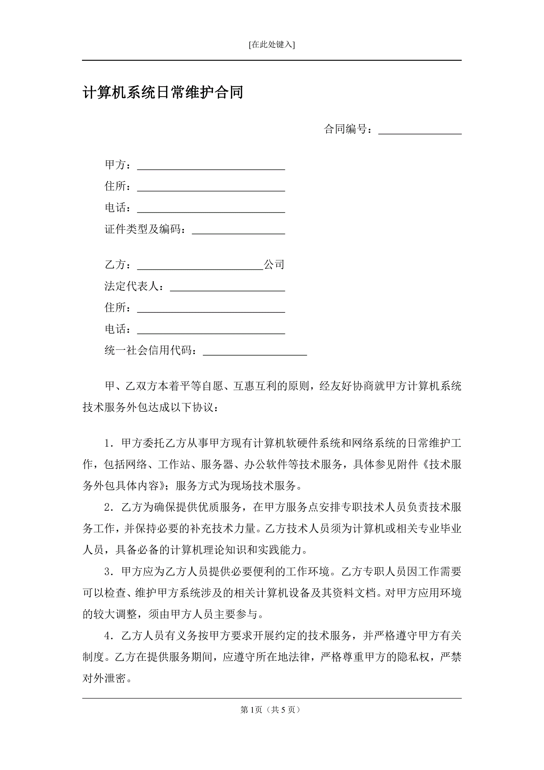 计算机系统日常维护合同
