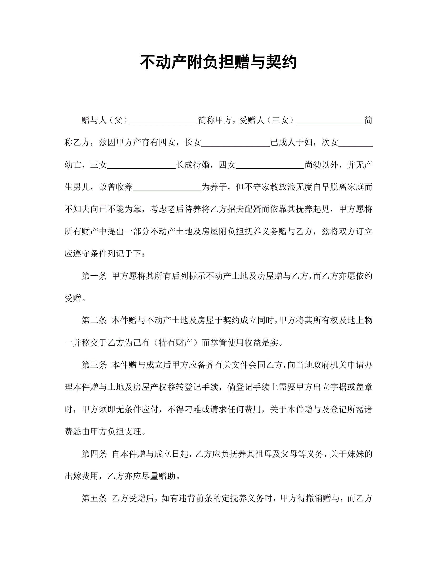 >不动产附负担赠与契约