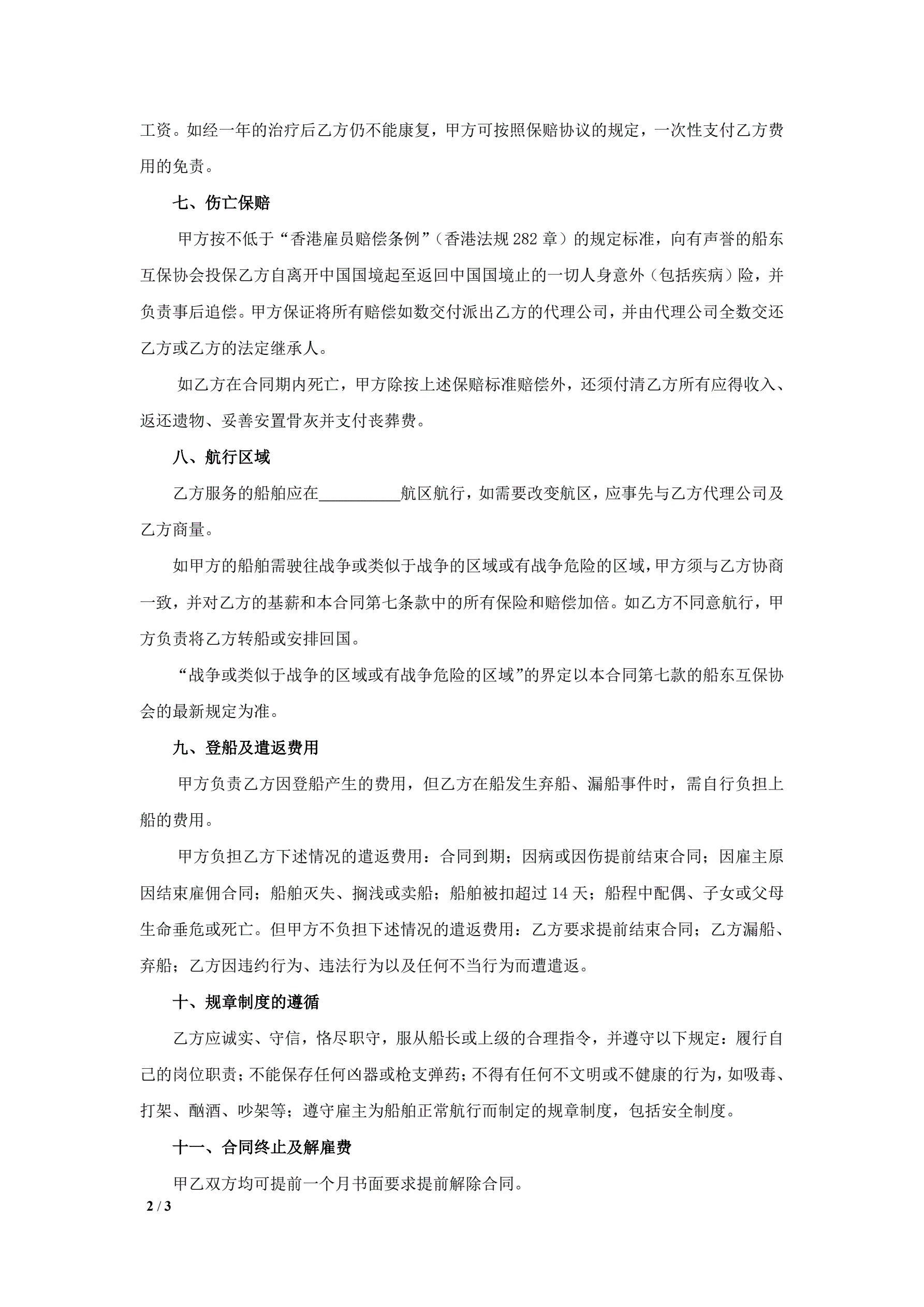 >海外雇主与外派海员雇佣协议