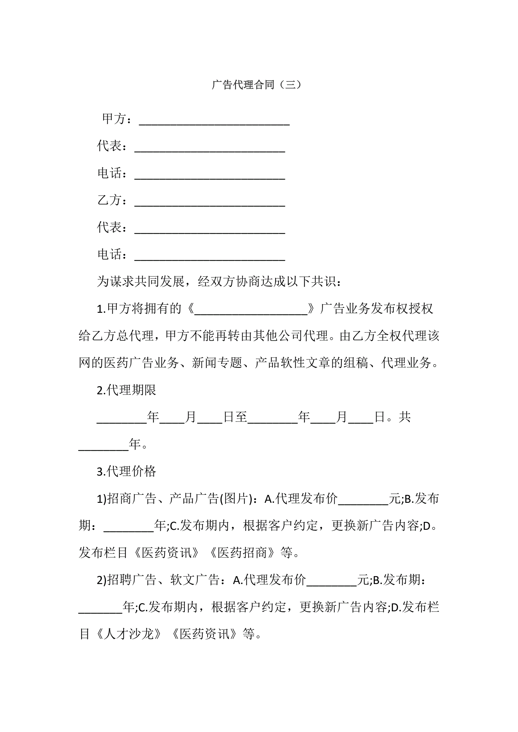 广告代理合同三