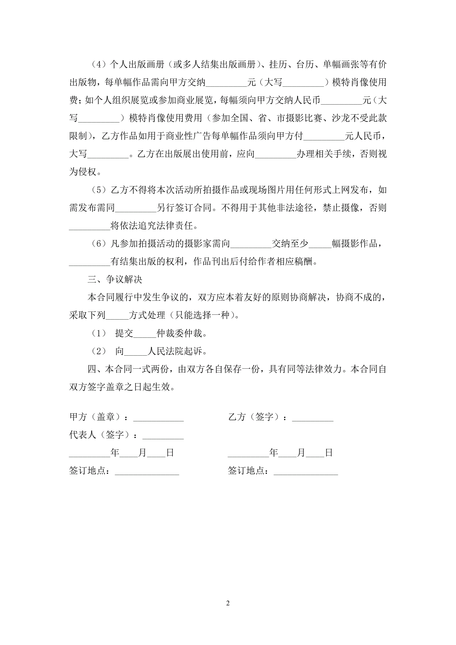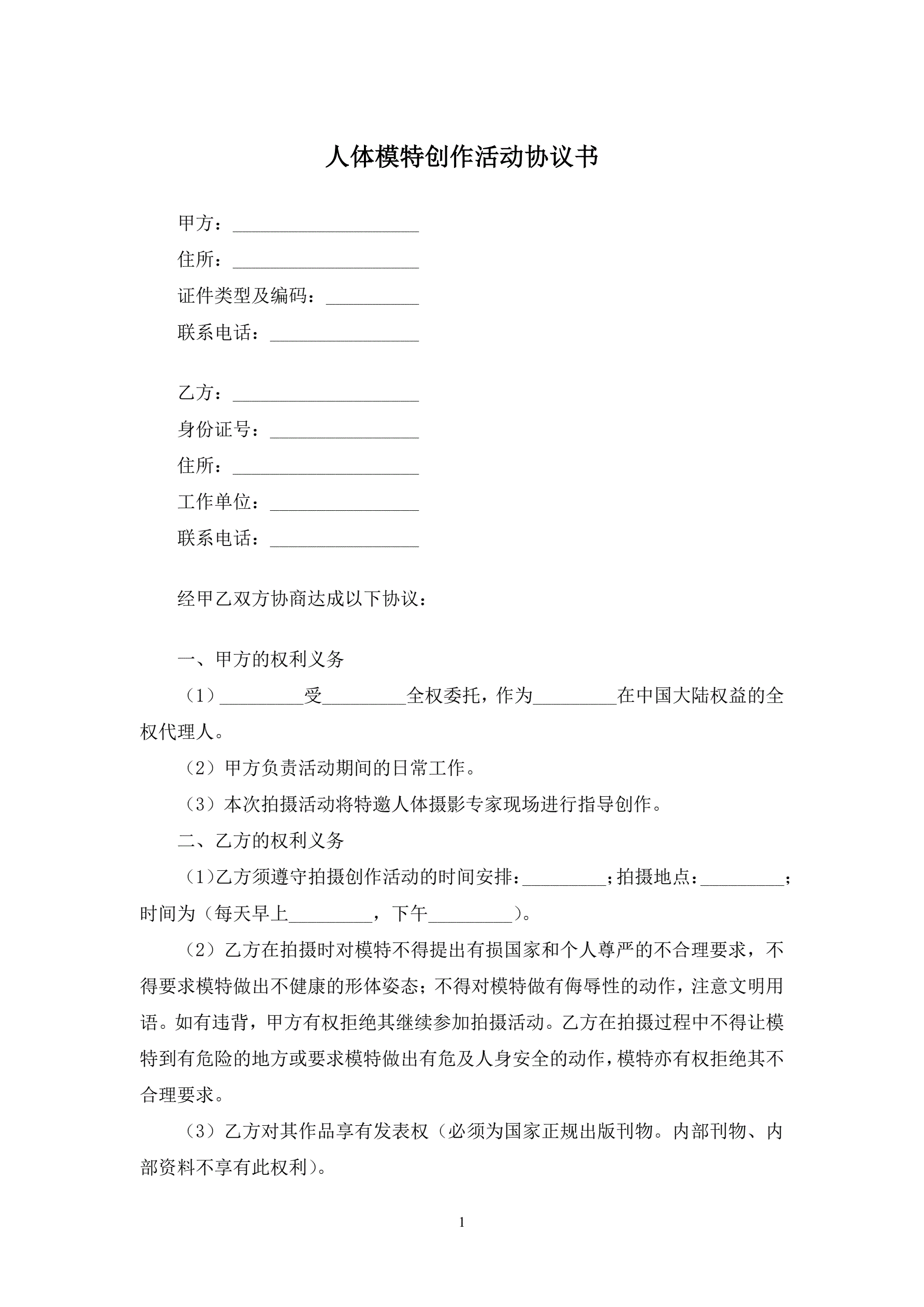 >人体模特创作活动协议书