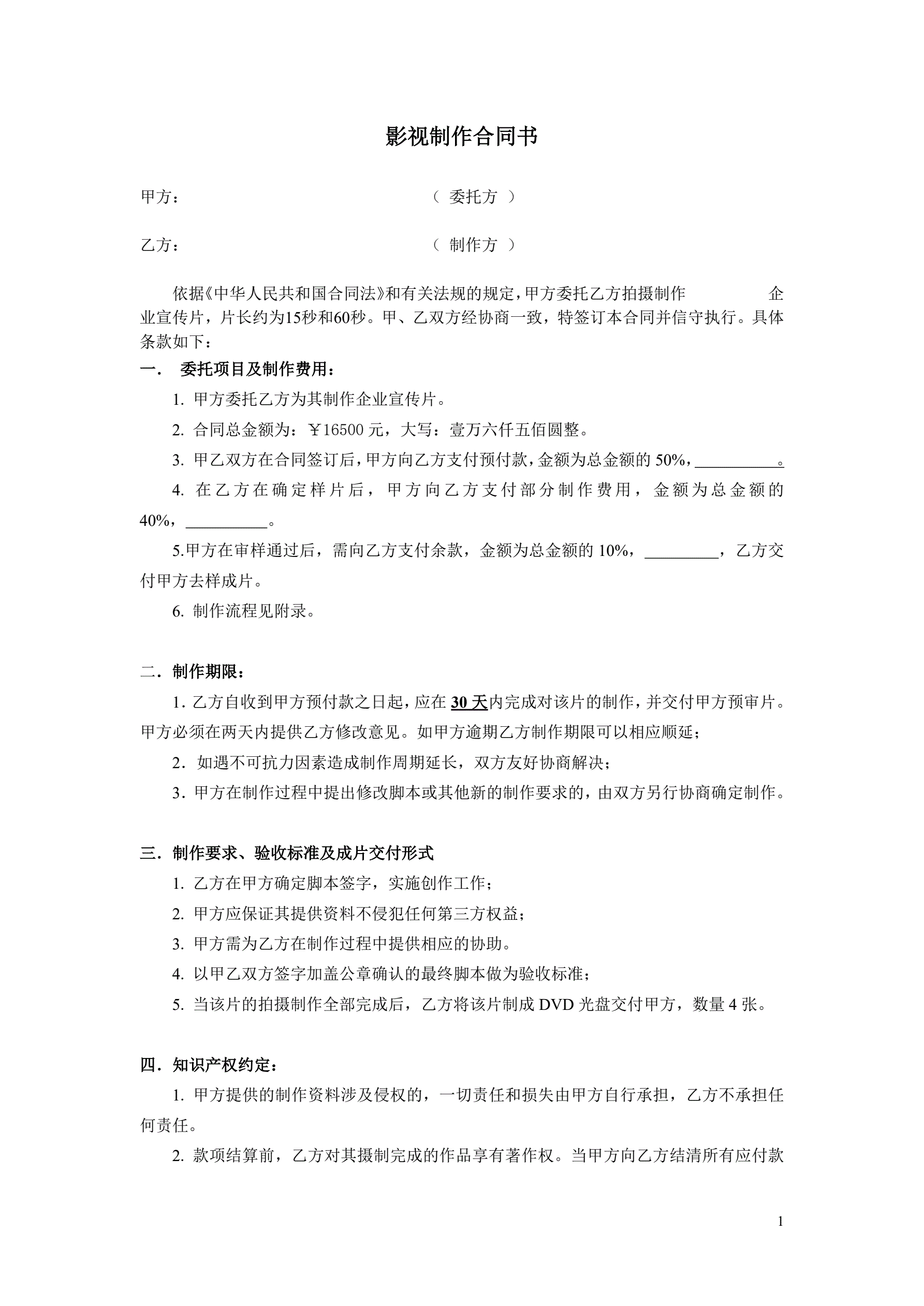 专业影视制作合同书