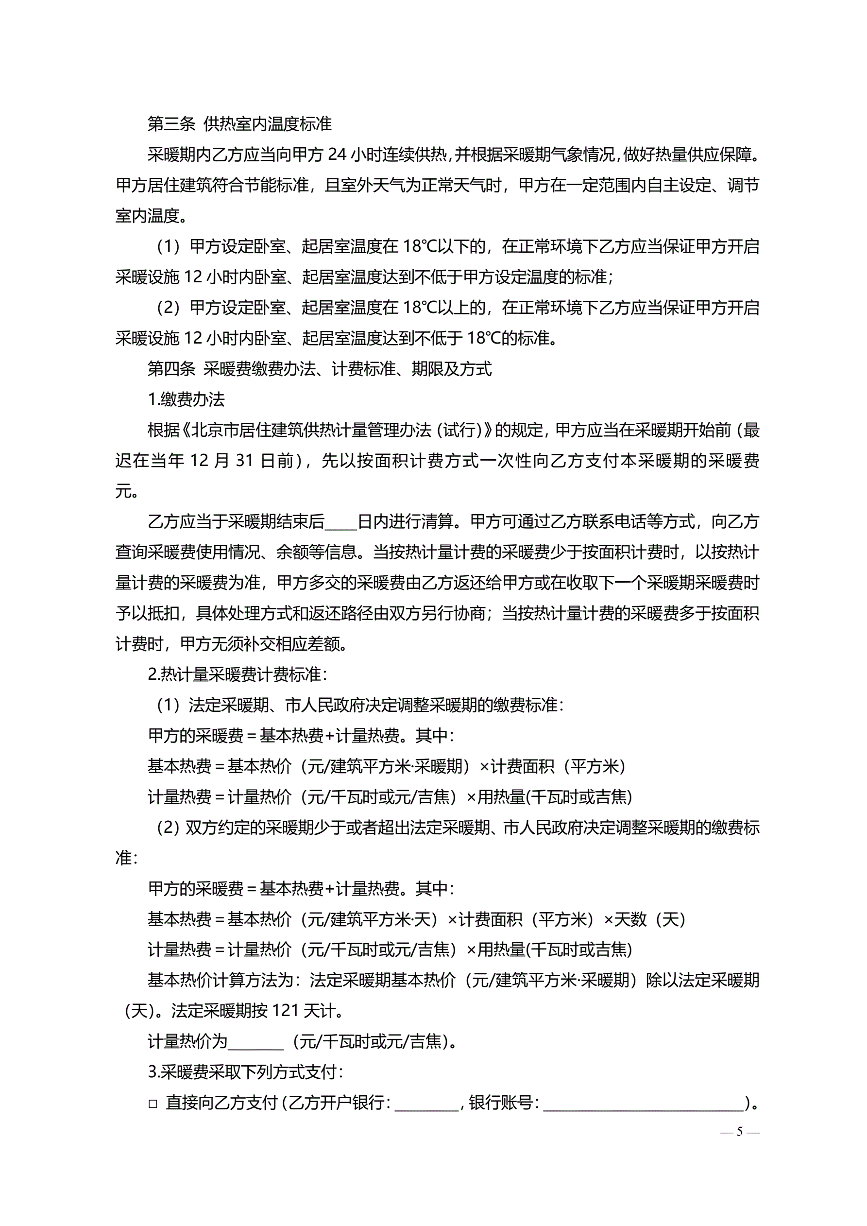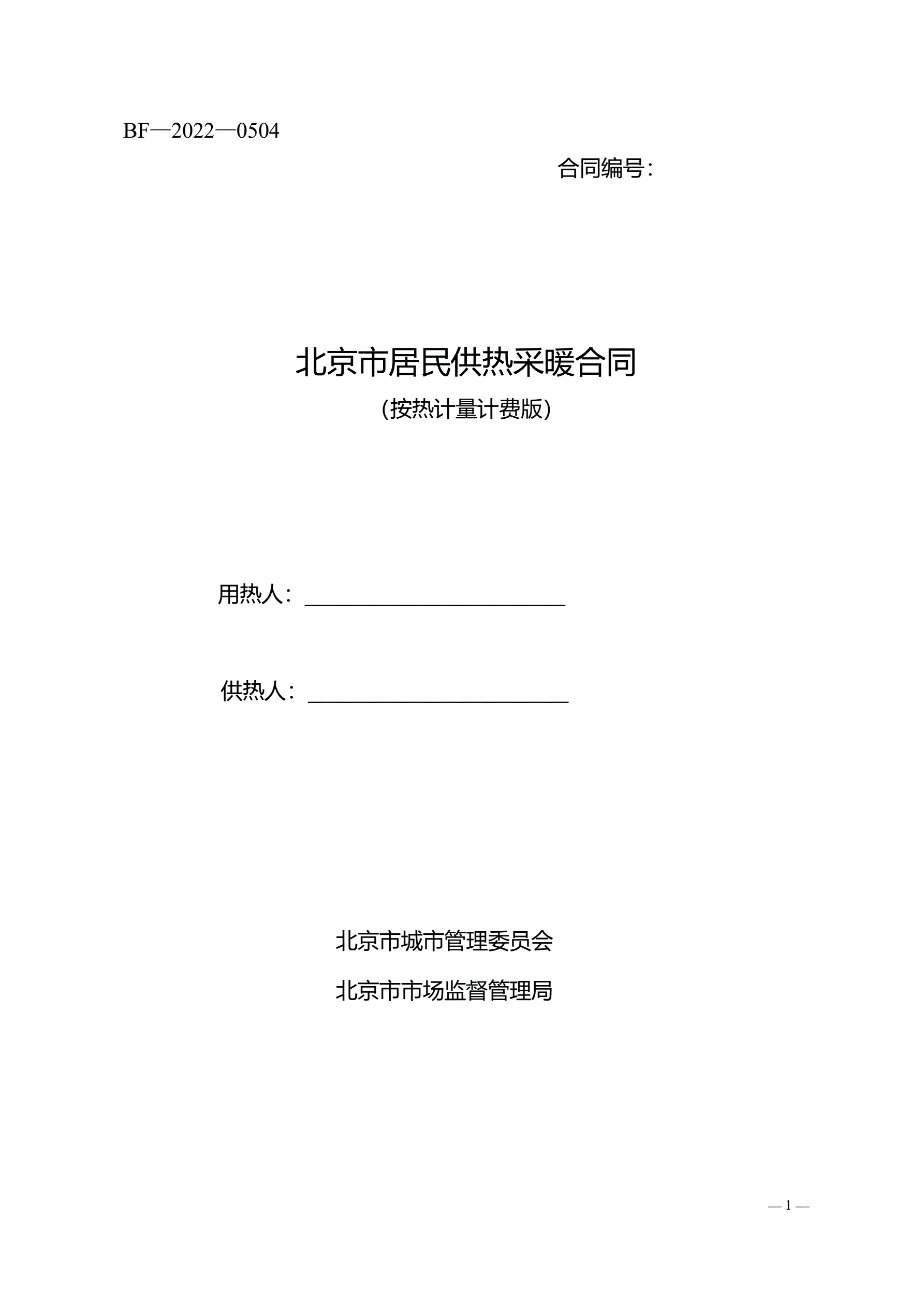 >北京市居民供热采暖合同(按热计量计费版)
