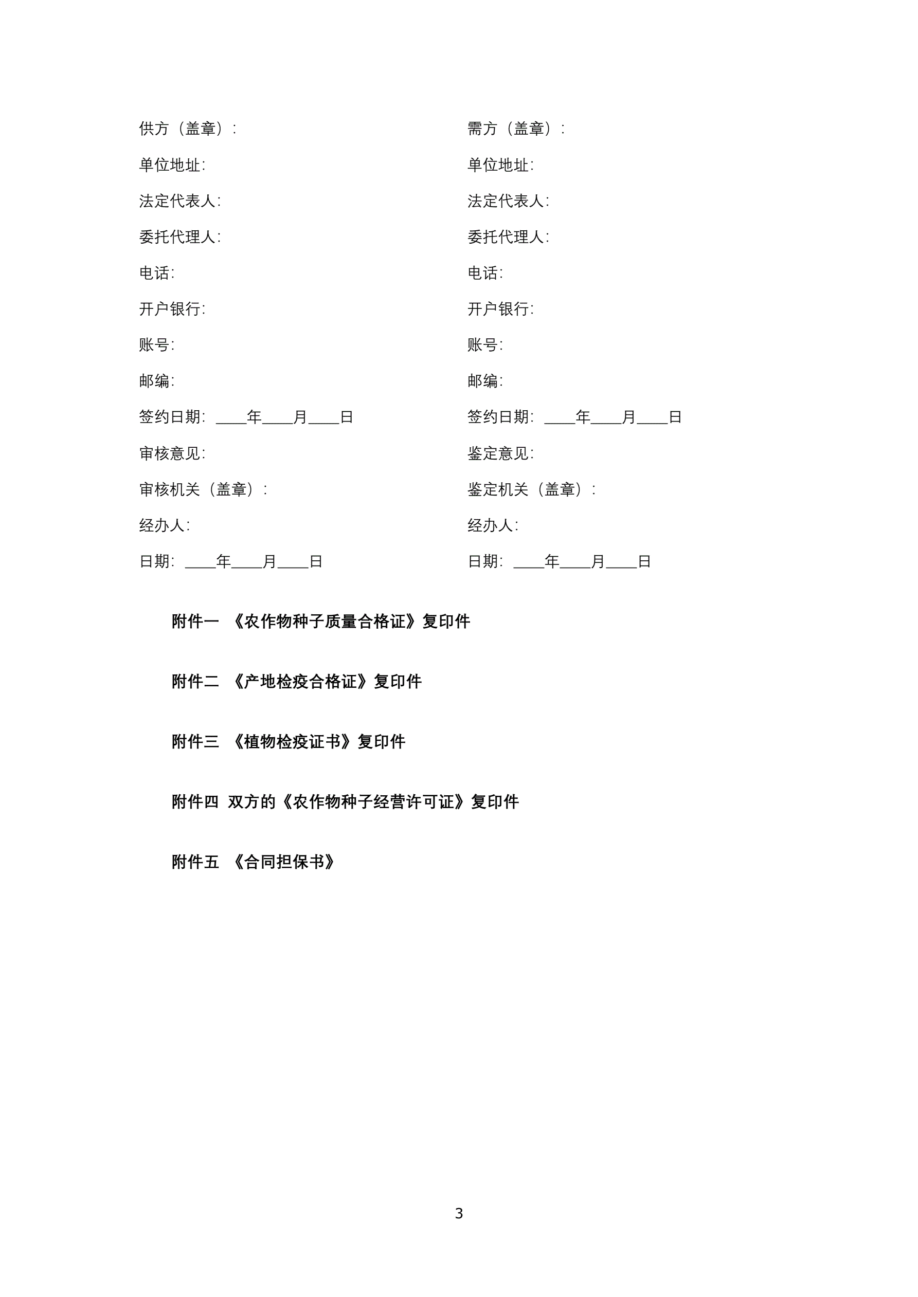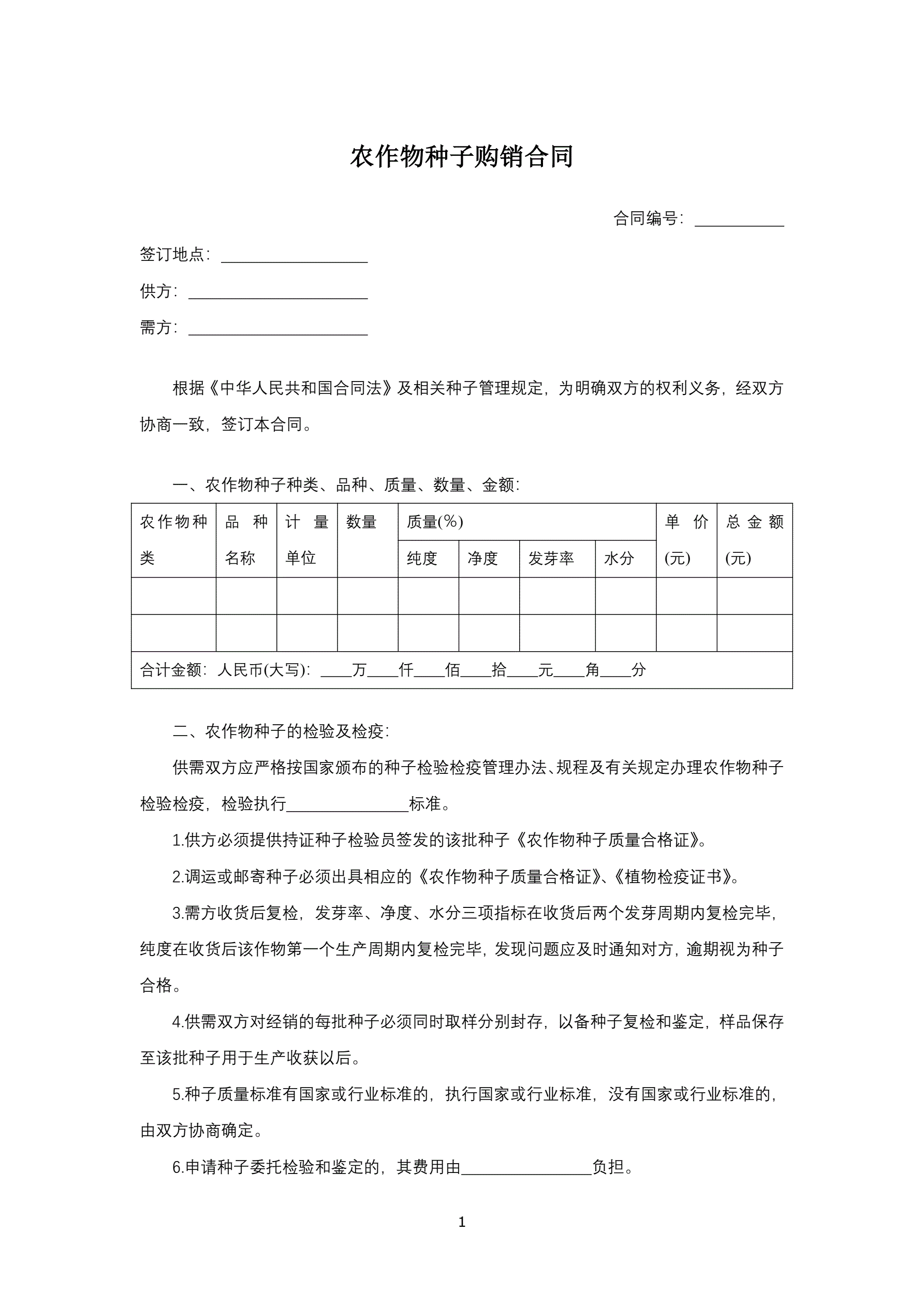 合同名称:农作物种子购销合同