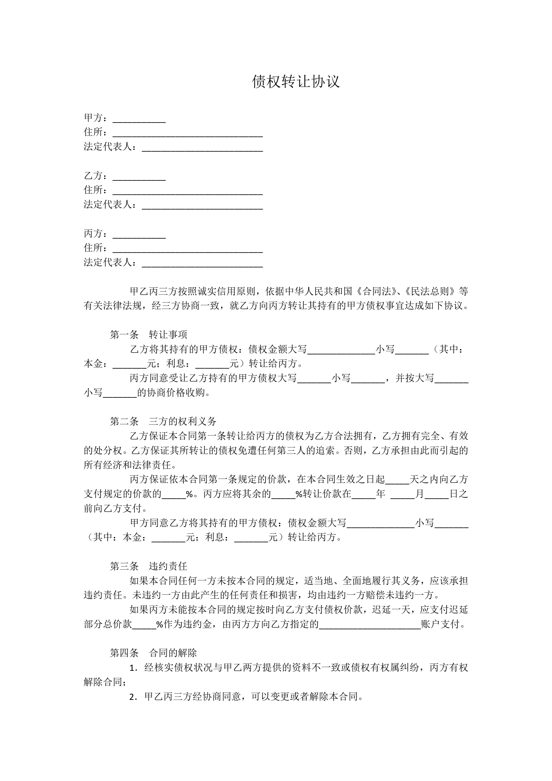 >三方债权转让协议