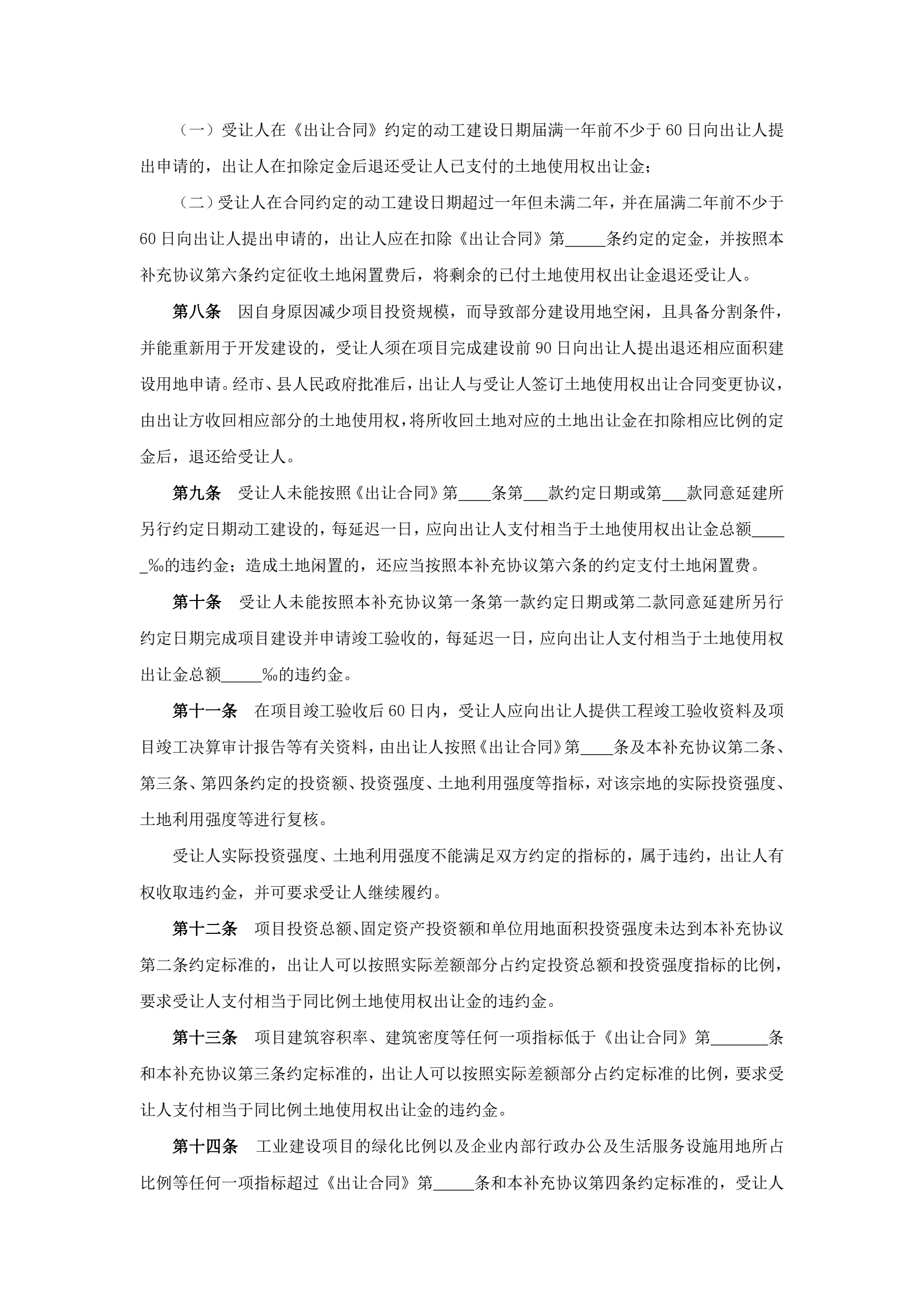 国有土地使用权出让合同补充协议