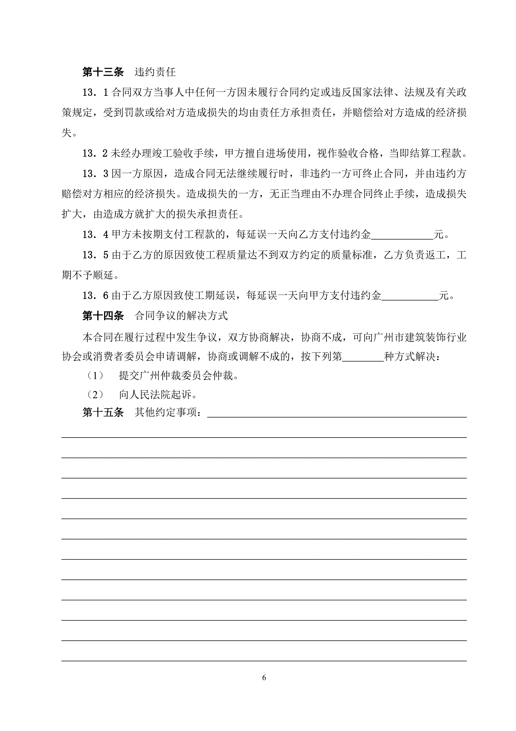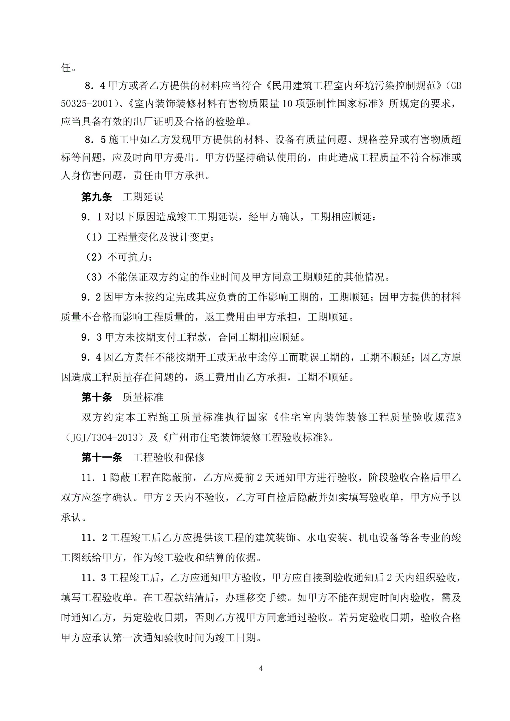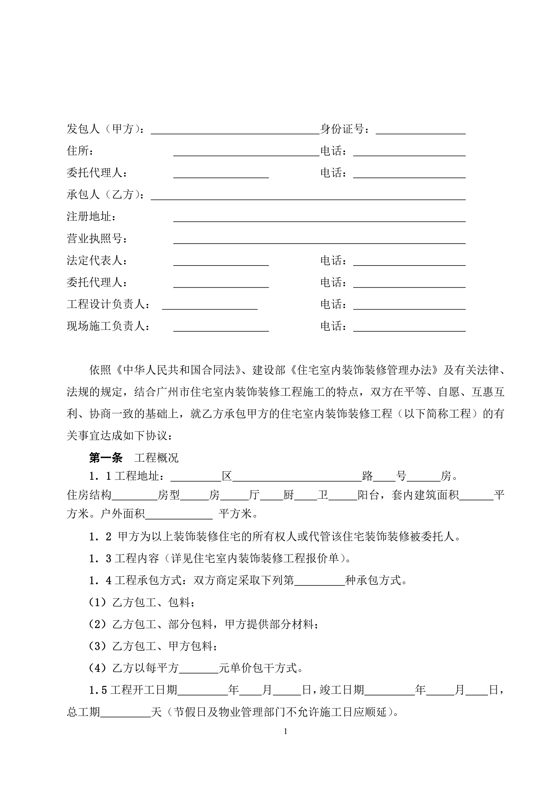 广州市住宅室内装饰装修工程施工合同