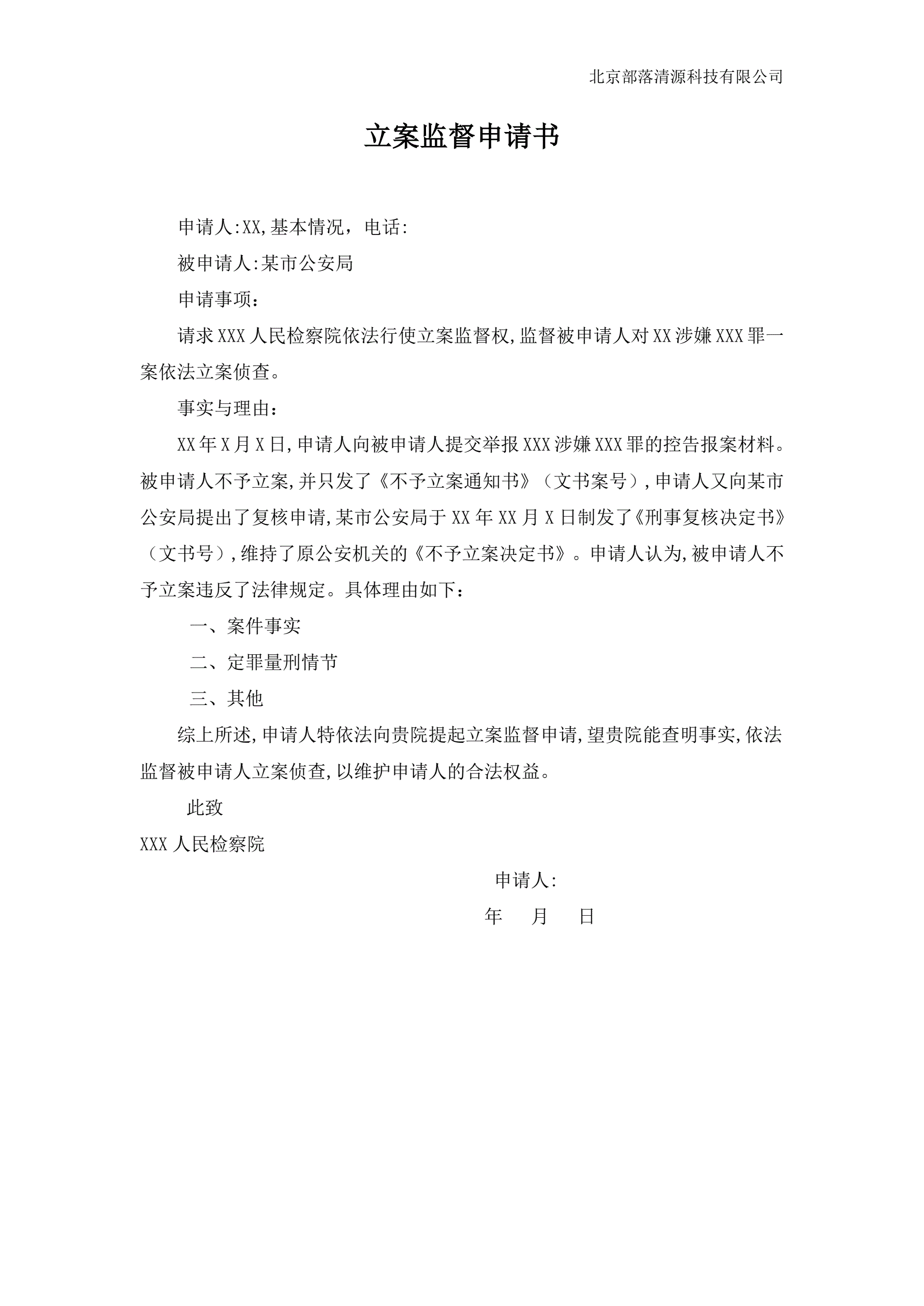 立案监督申请书
