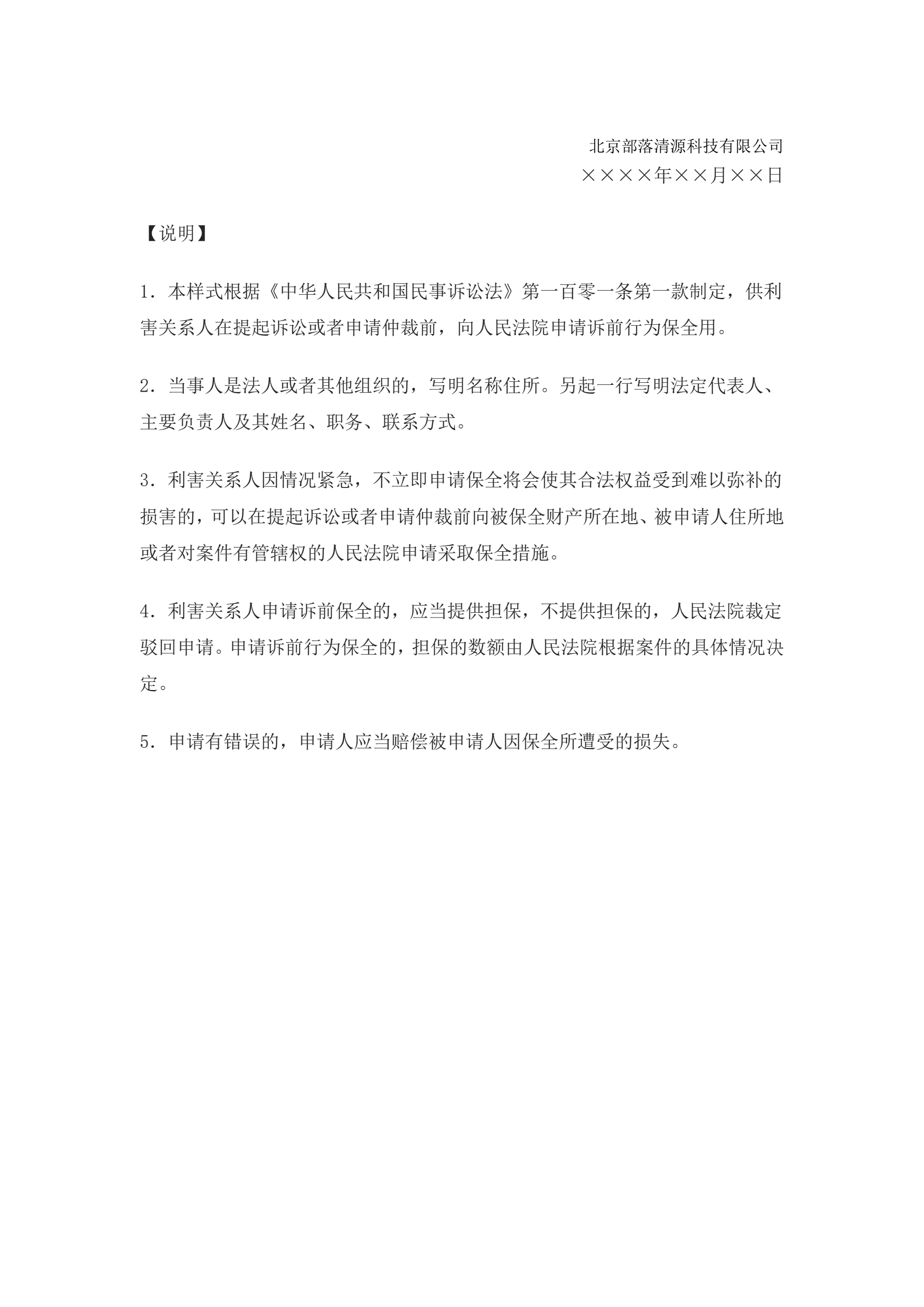 >申请书(申请诉前或仲裁前行为保全用)