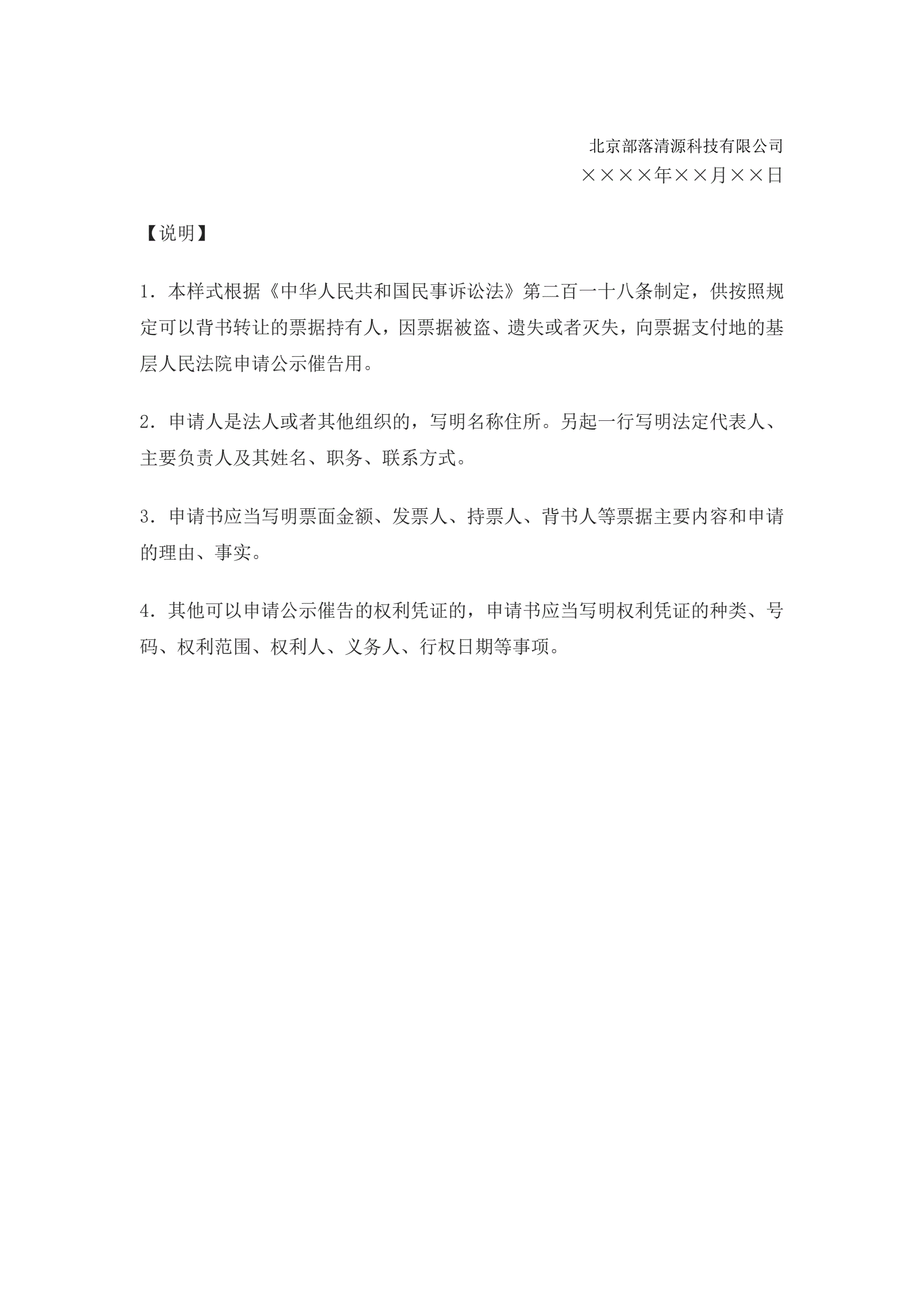 >申请书(申请公示催告用)