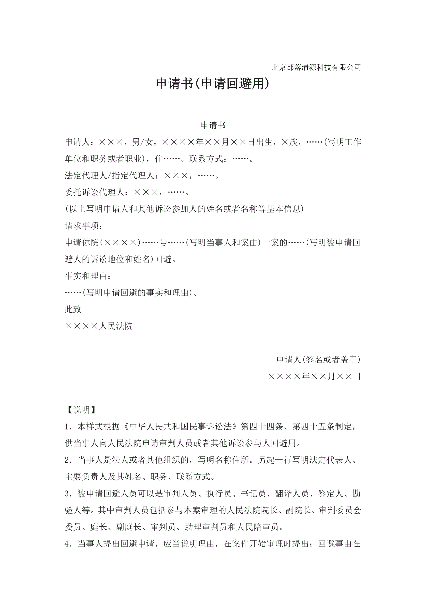 >申请书(申请回避用)