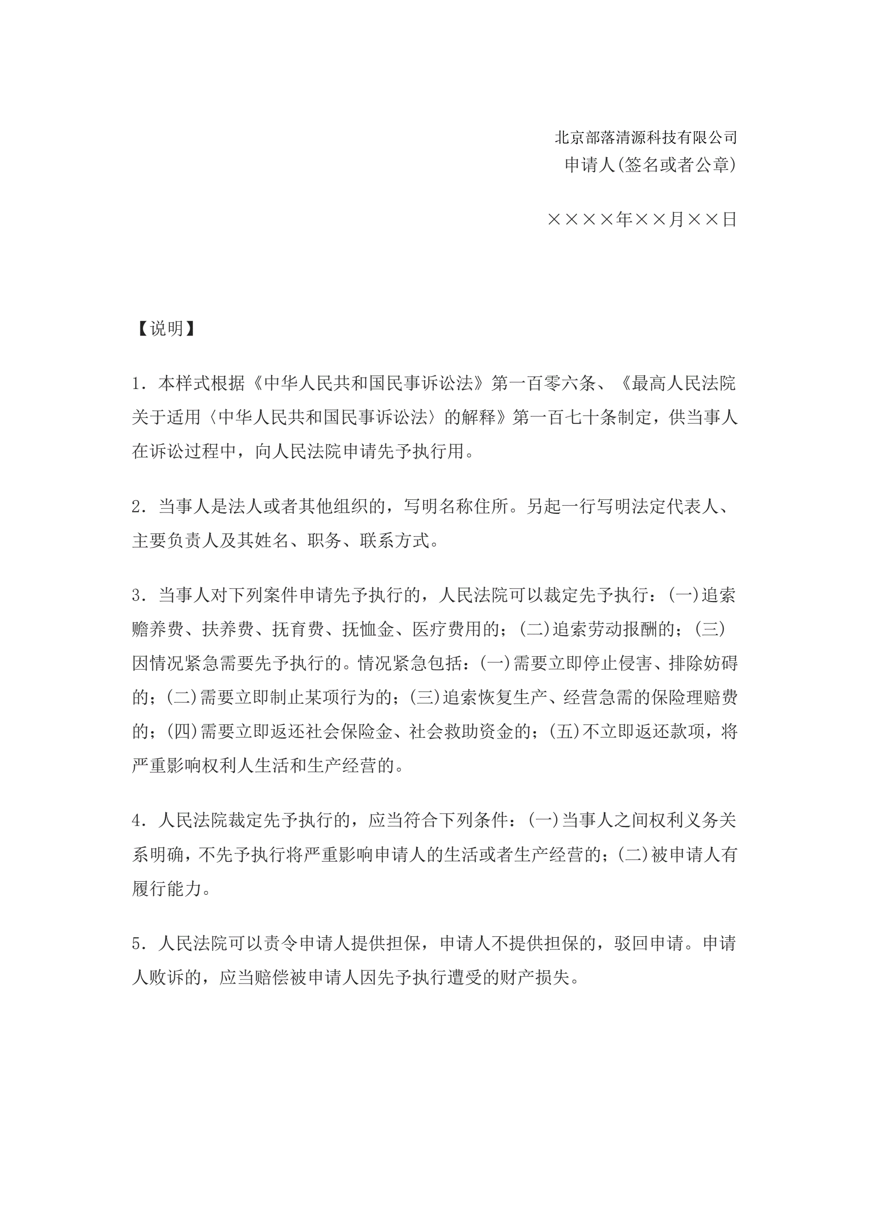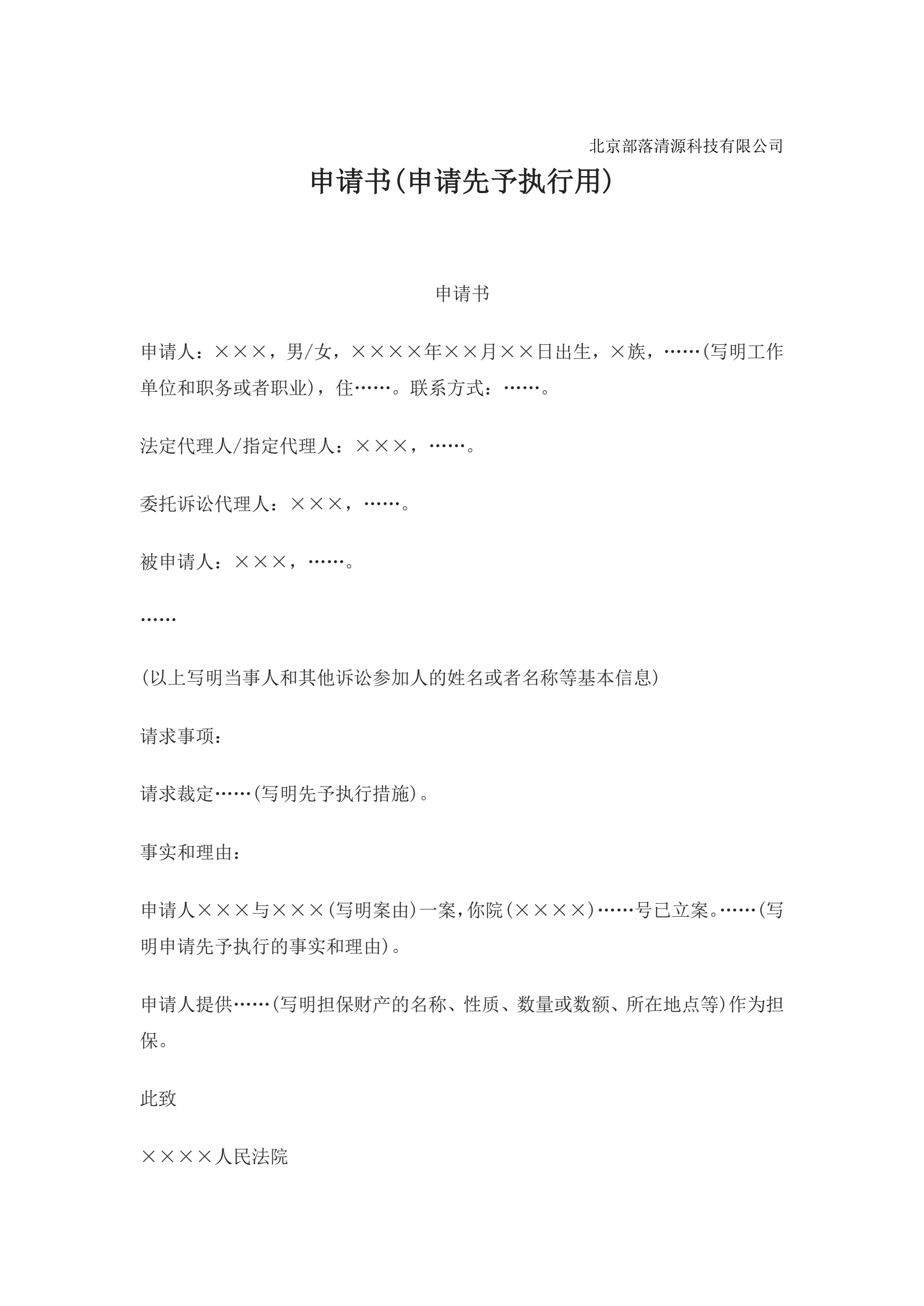 >申请书(申请先予执行用)