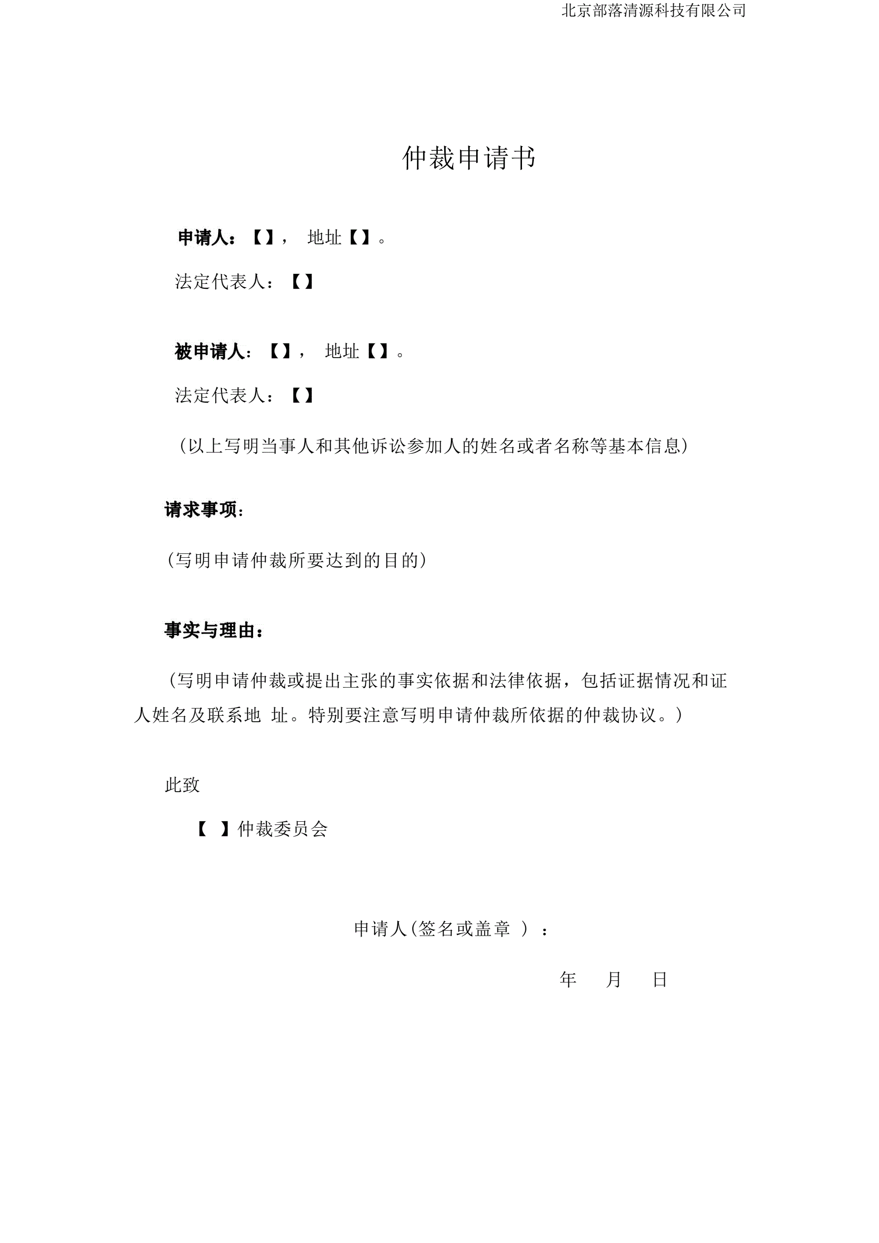 仲裁申请书模板
