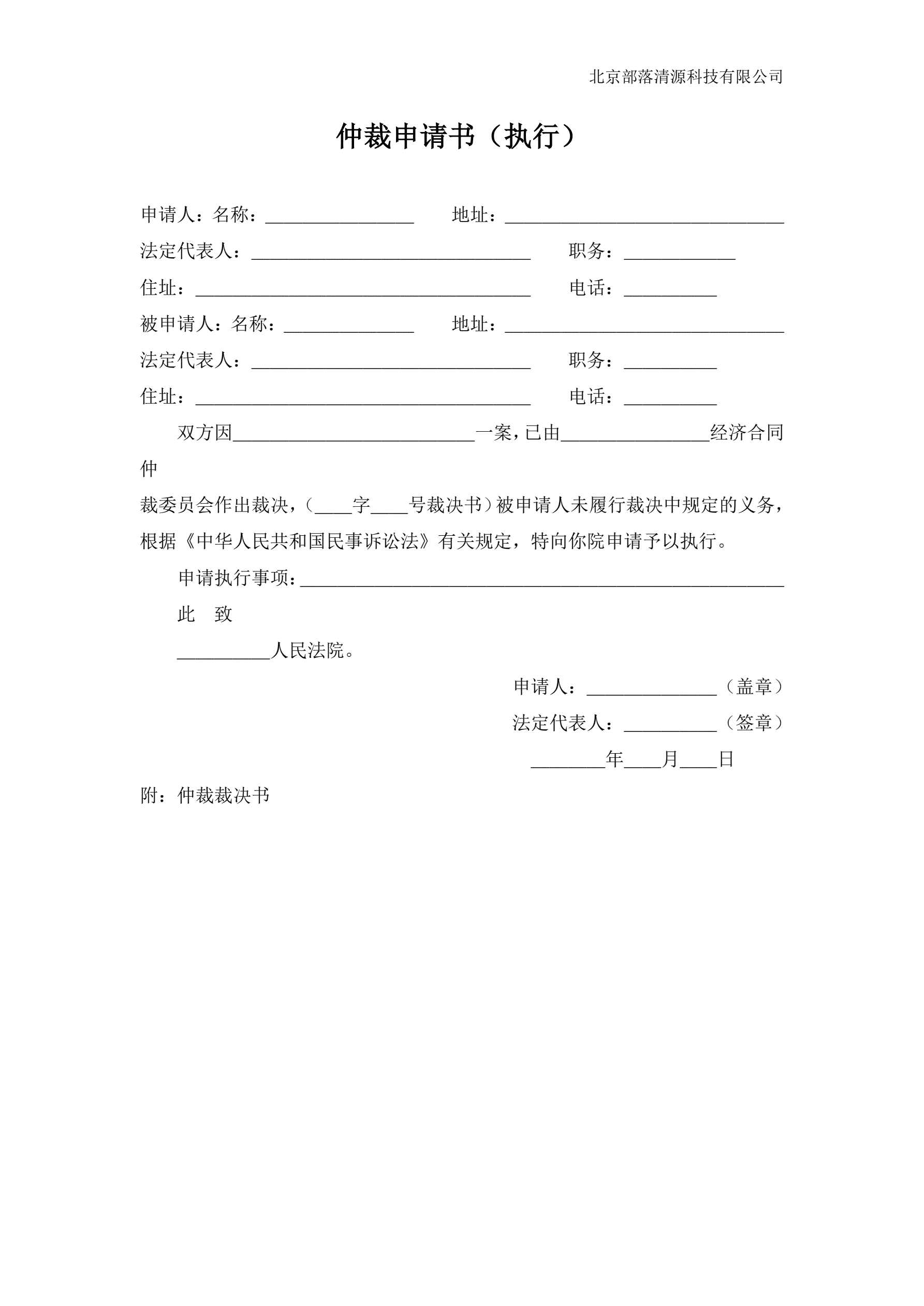 >仲裁申请书(执行)