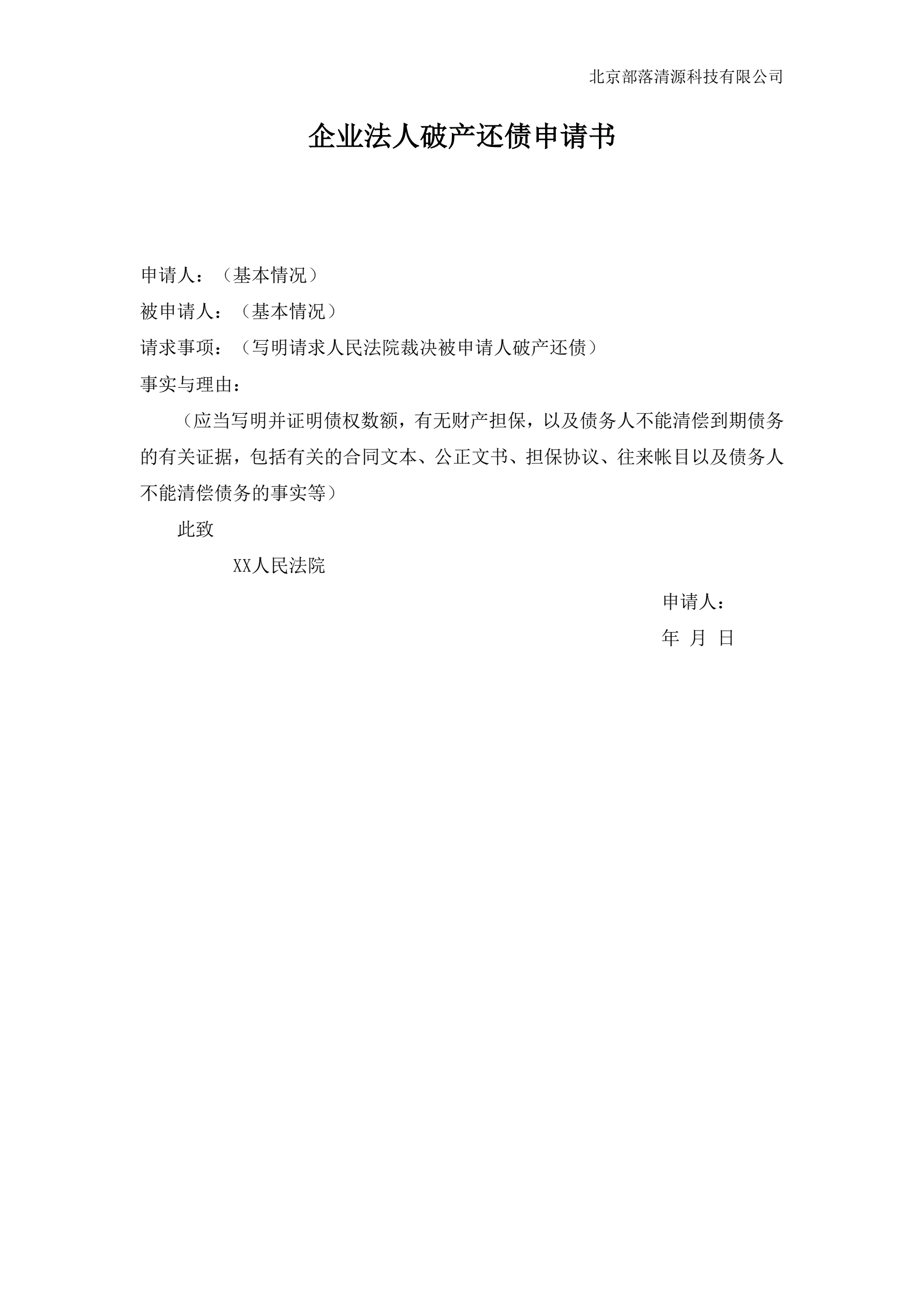 >企业法人破产还债申请书