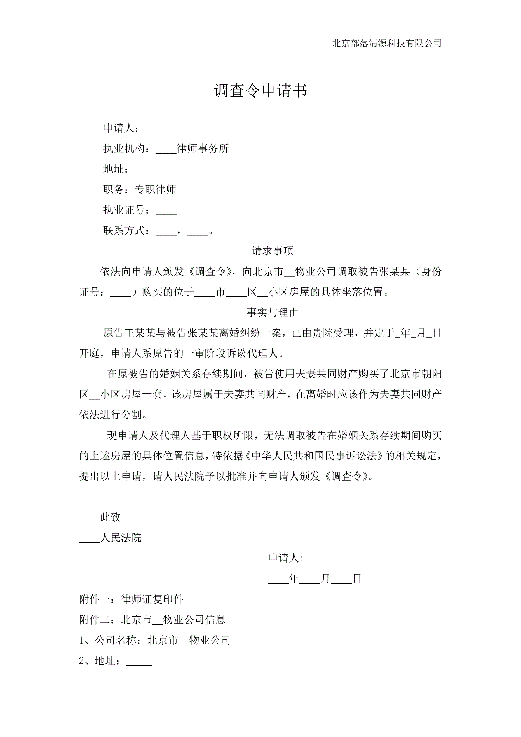 调查取证申请书(调房屋的具体坐落位置)