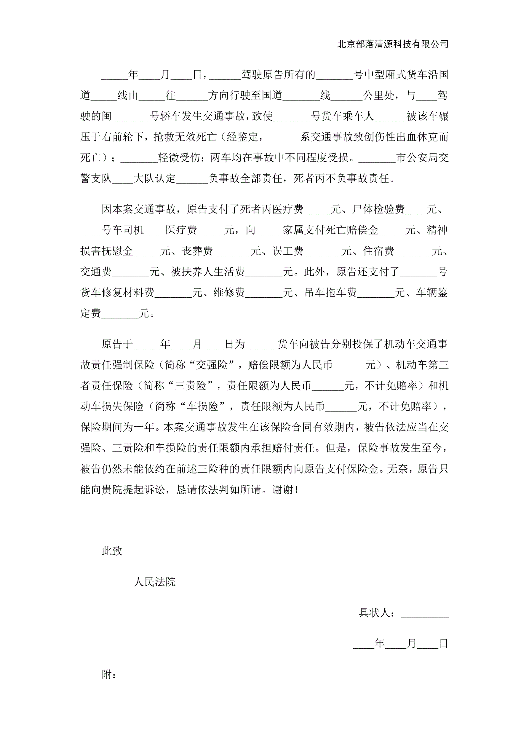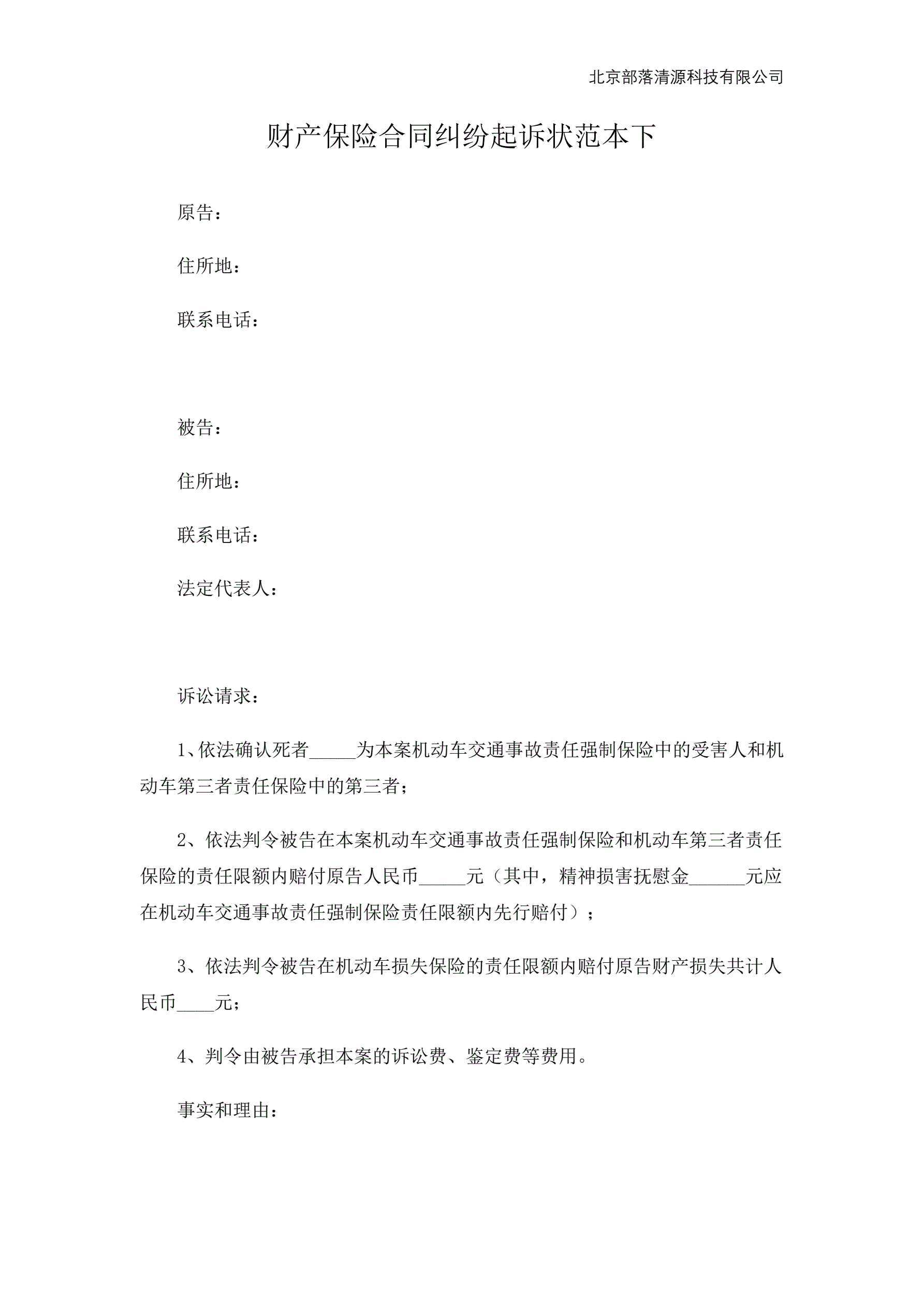>财产保险合同纠纷起诉状范本下