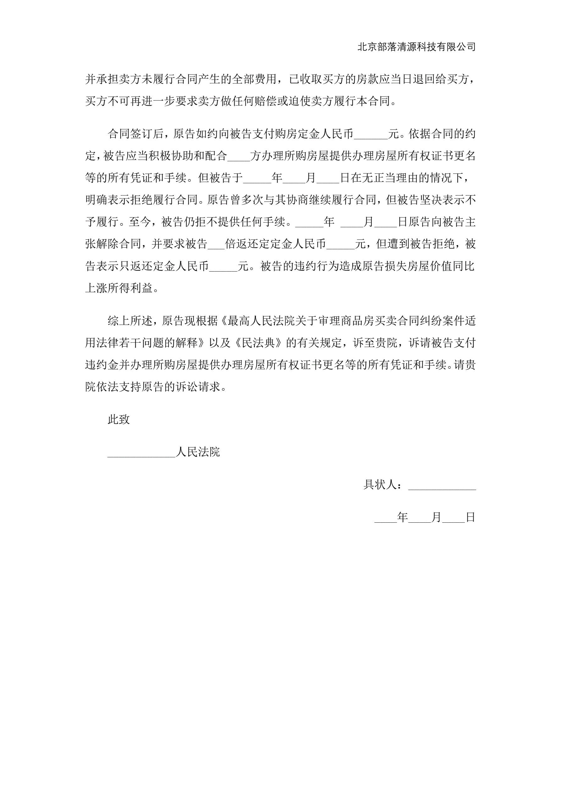 >房产纠纷起诉状范本
