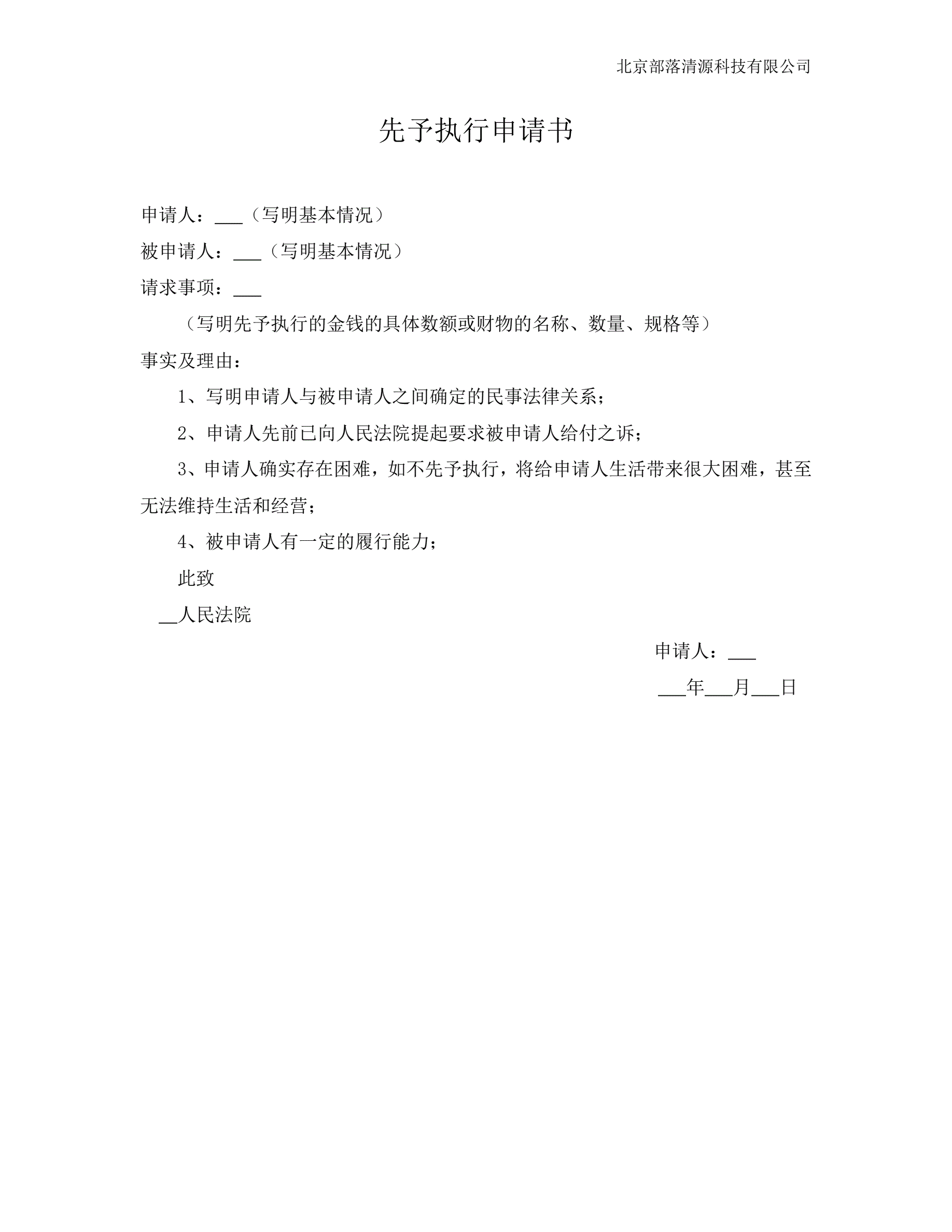 先予执行申请书最新版