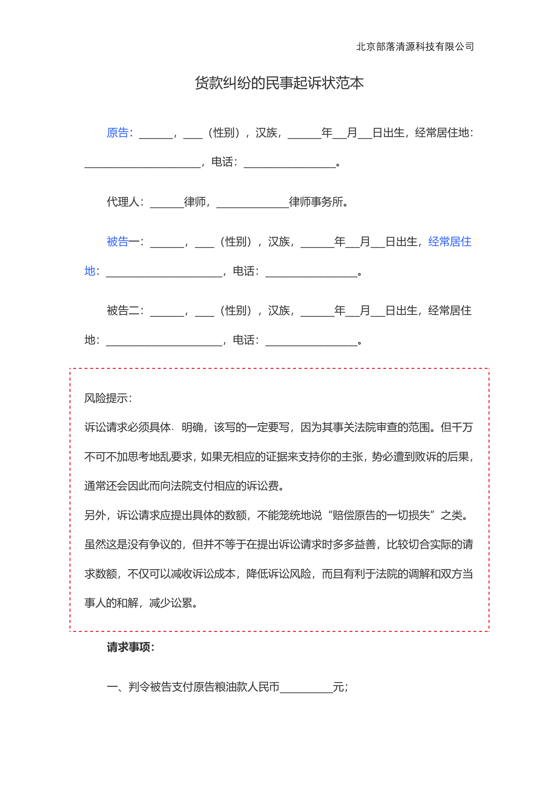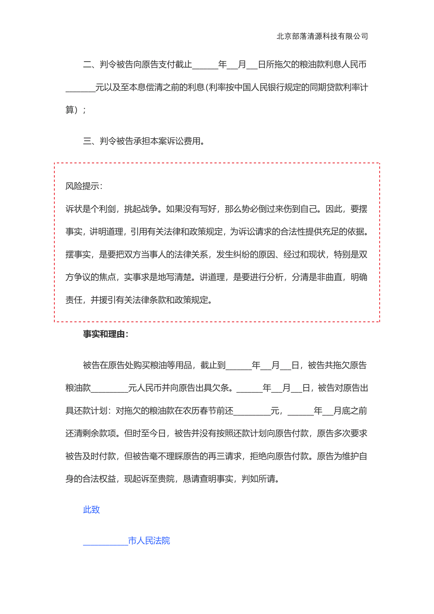 >货款纠纷的民事起诉状范本