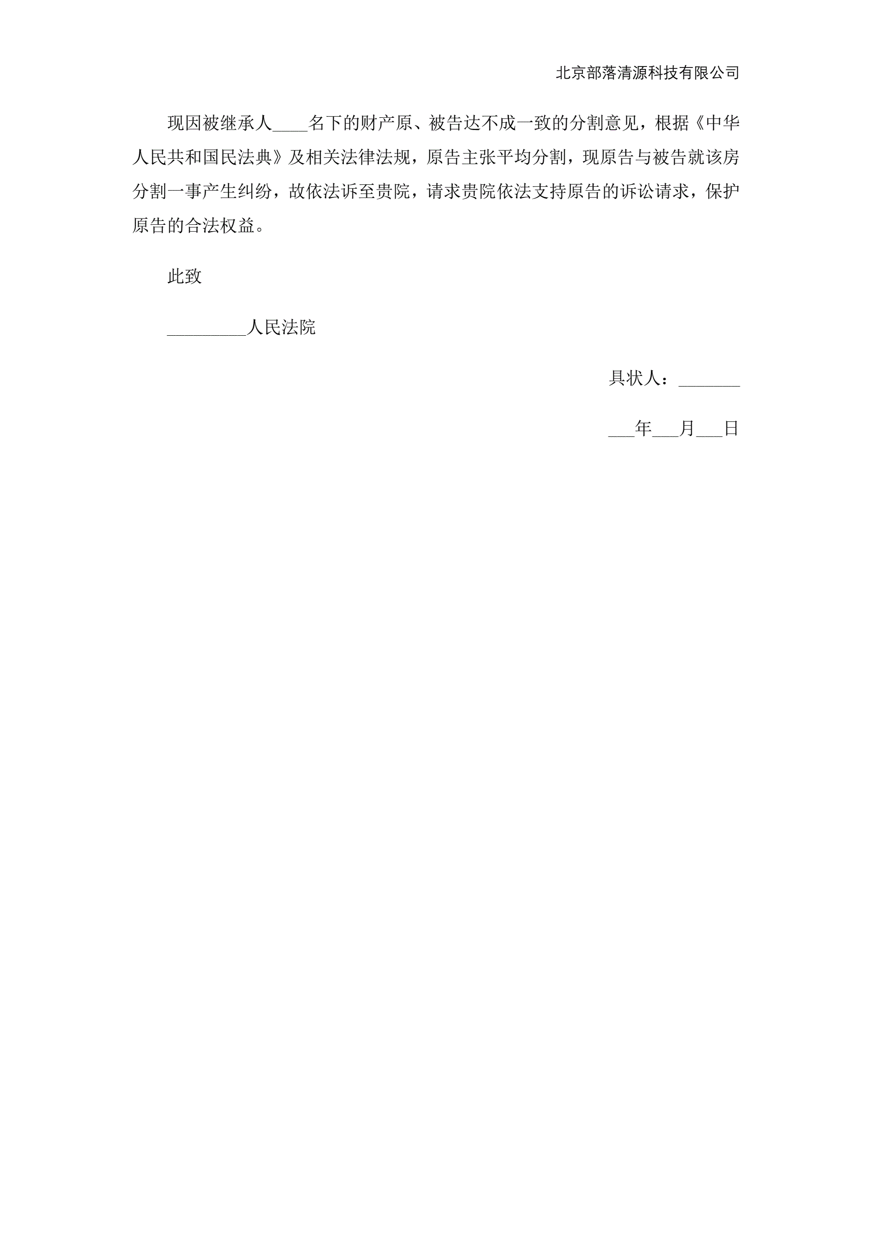 遗产起诉状范本