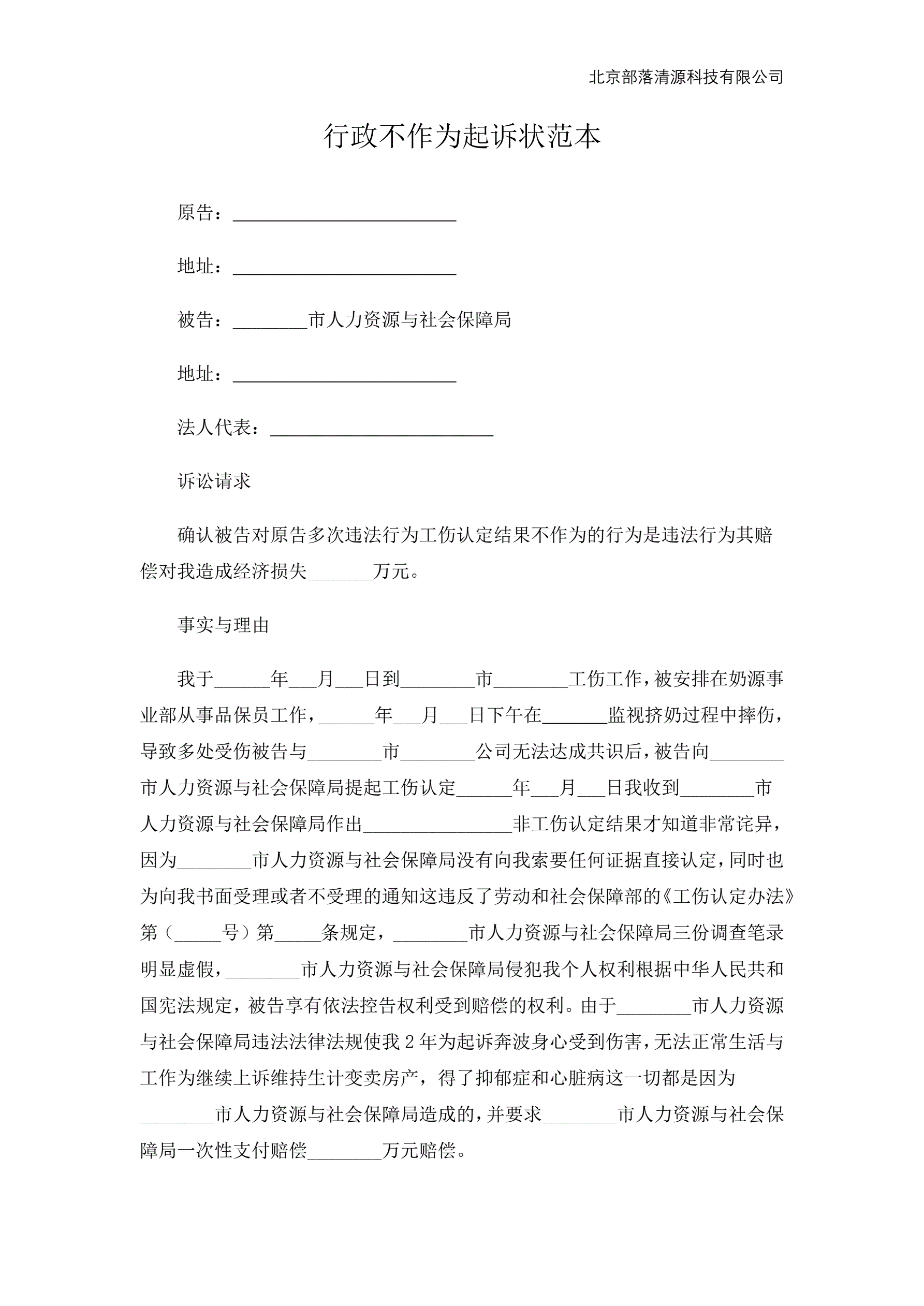 行政不作为起诉状范本