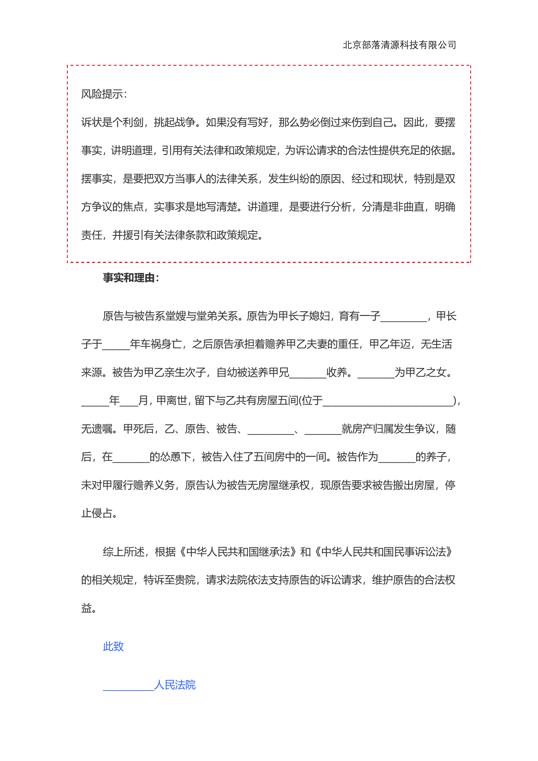 继承(权)民事起诉状范本