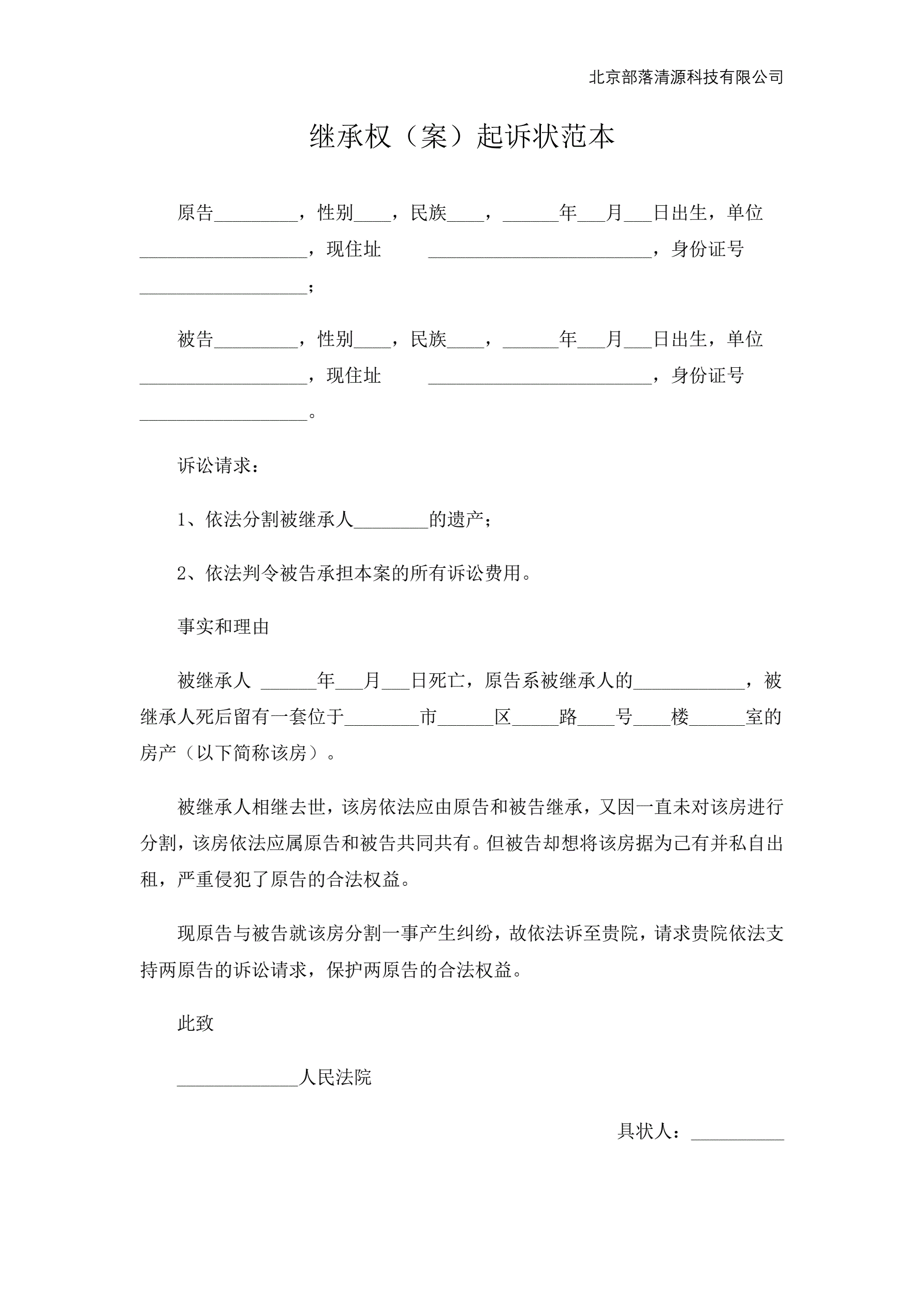 继承权(案)起诉状范本