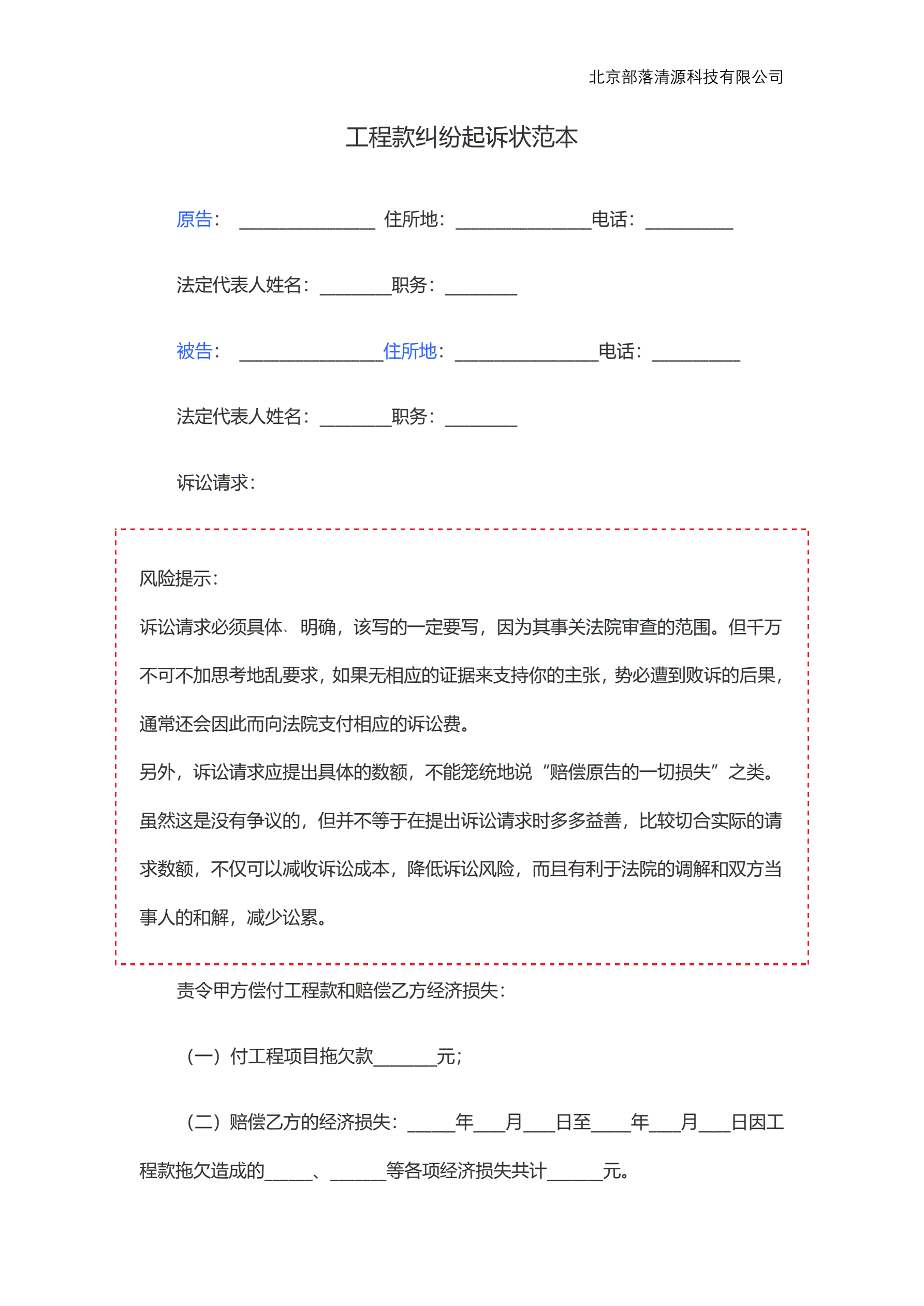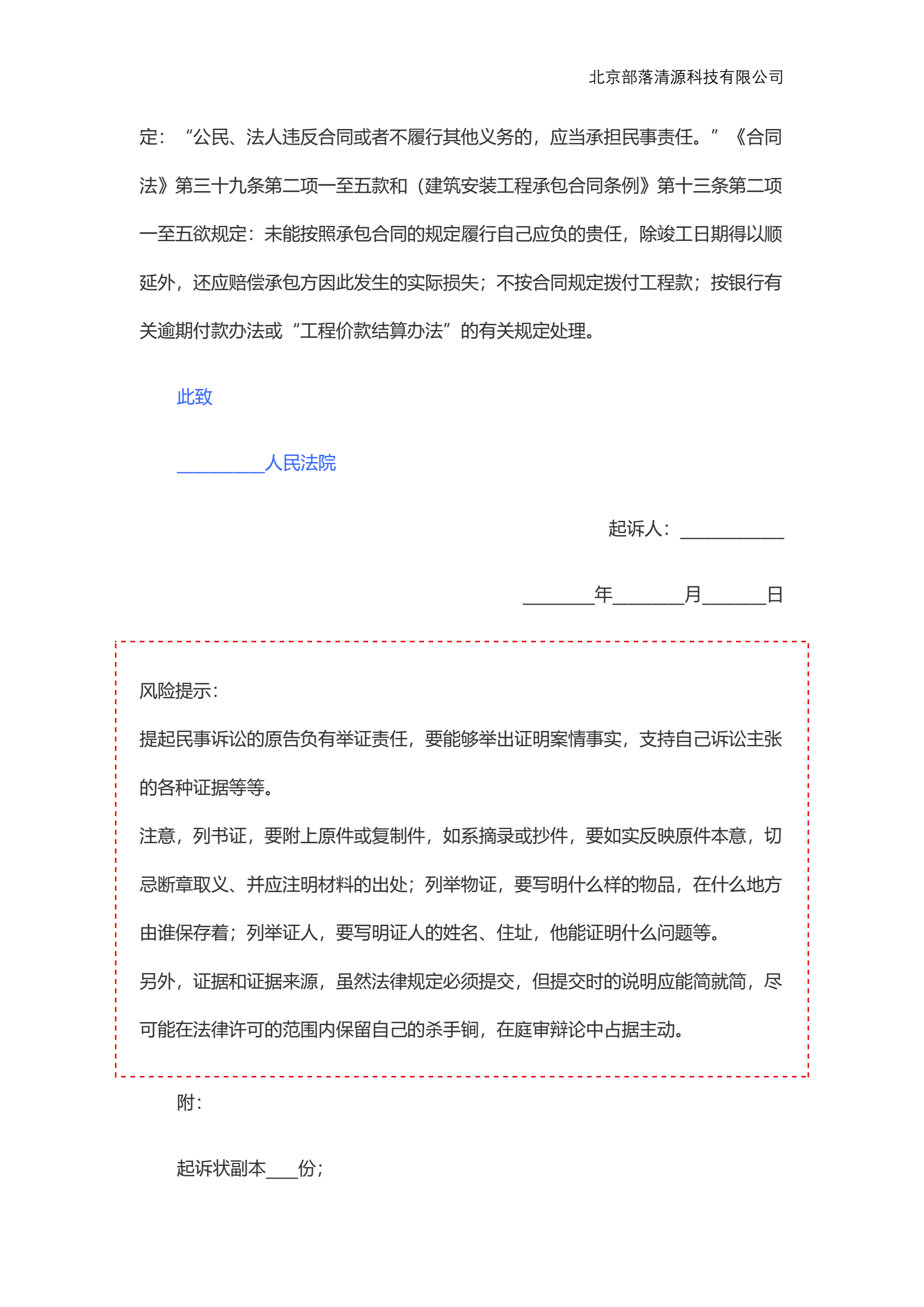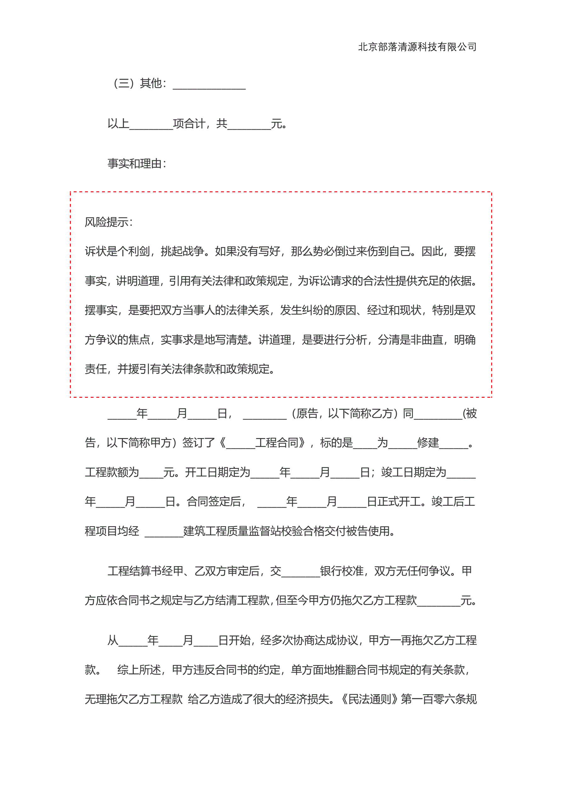 工程款纠纷起诉状范本