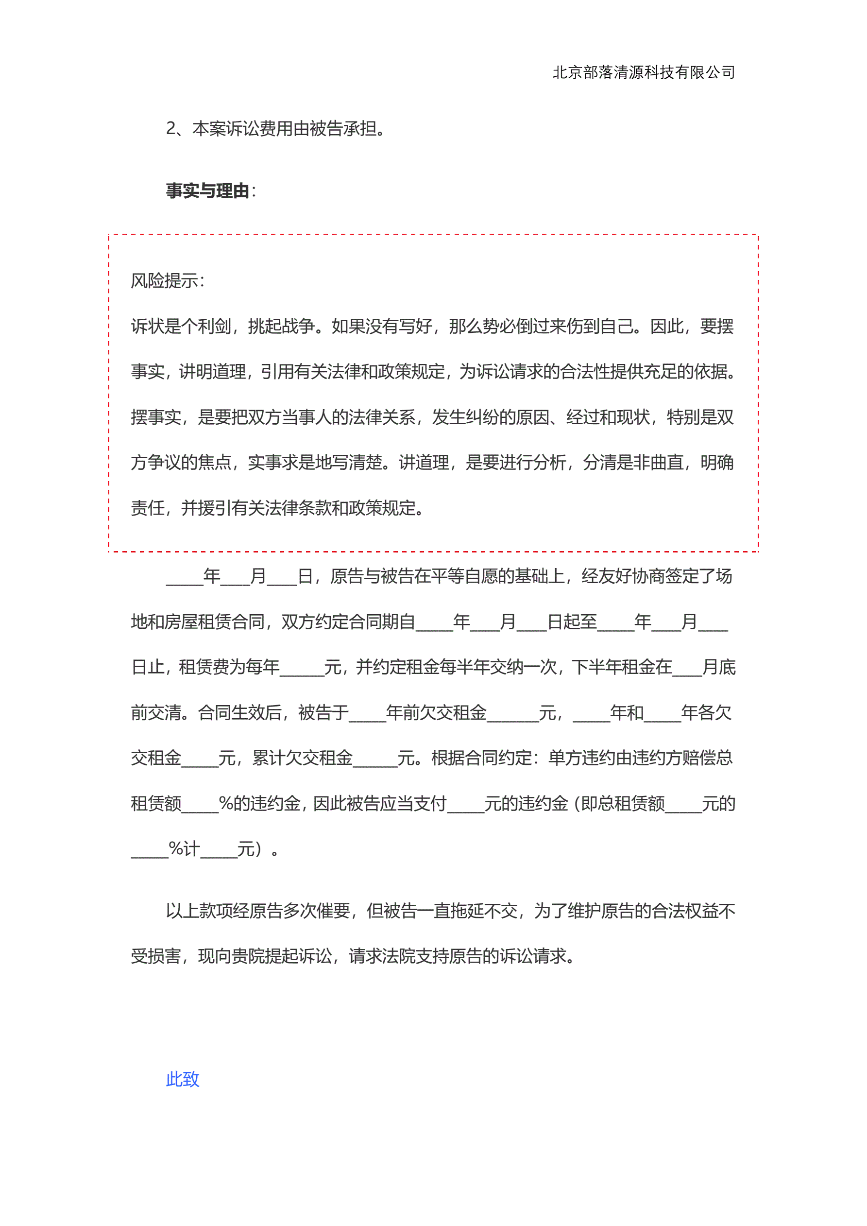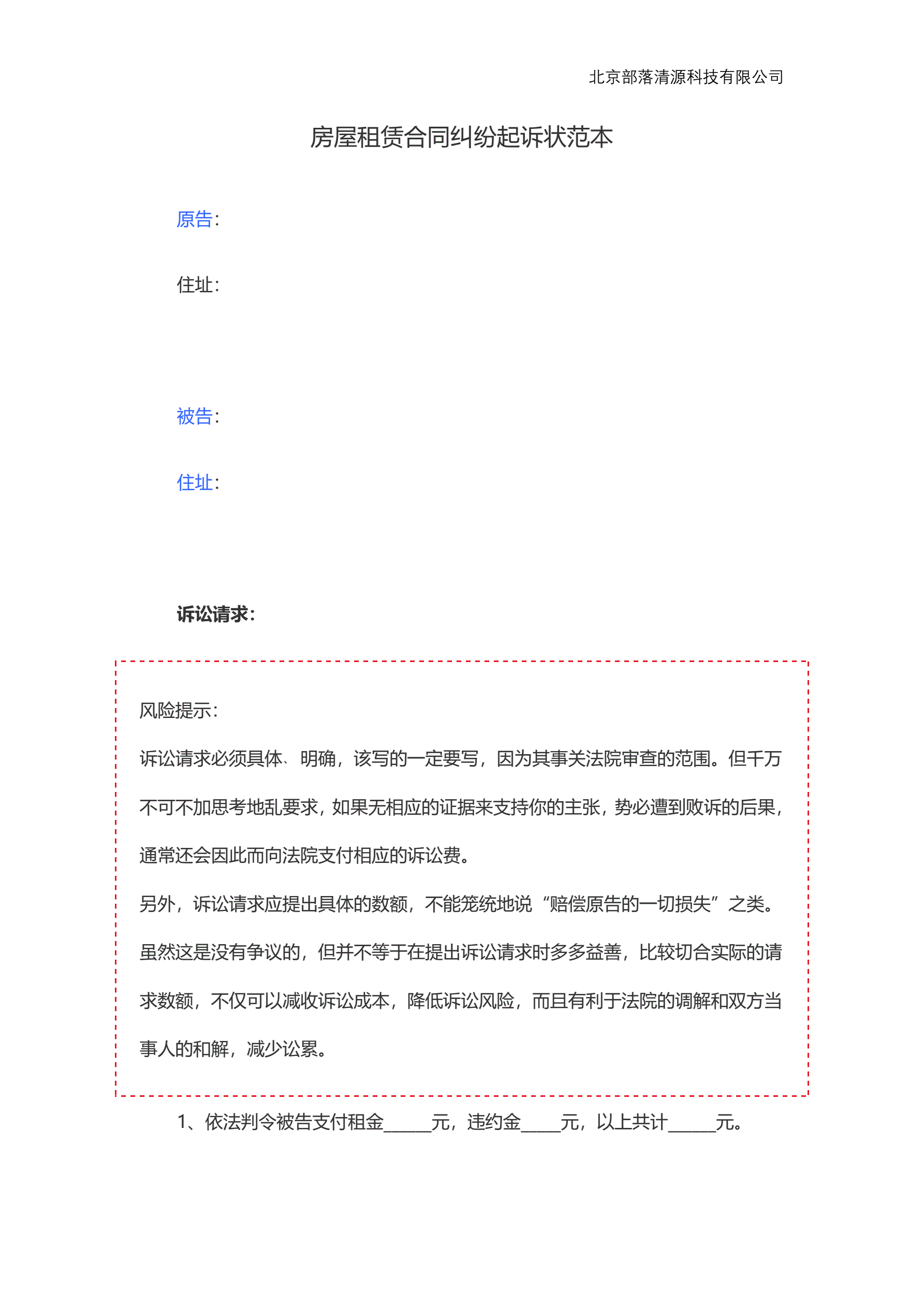 房屋租赁合同纠纷起诉状范本