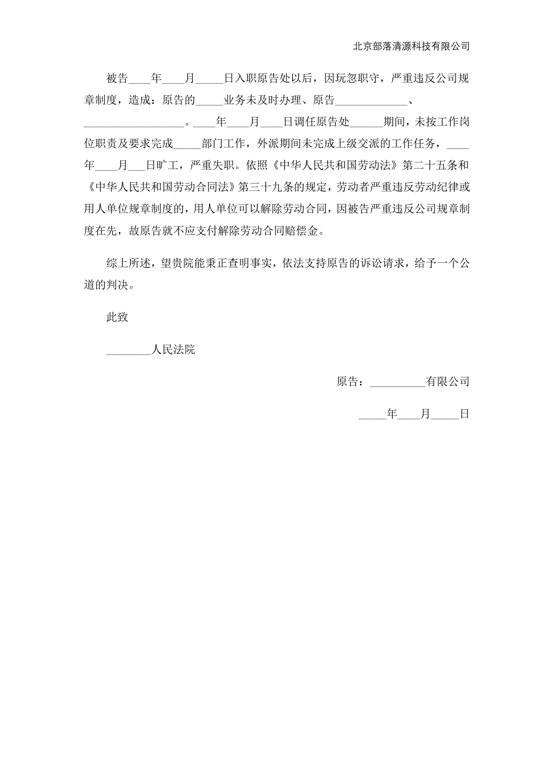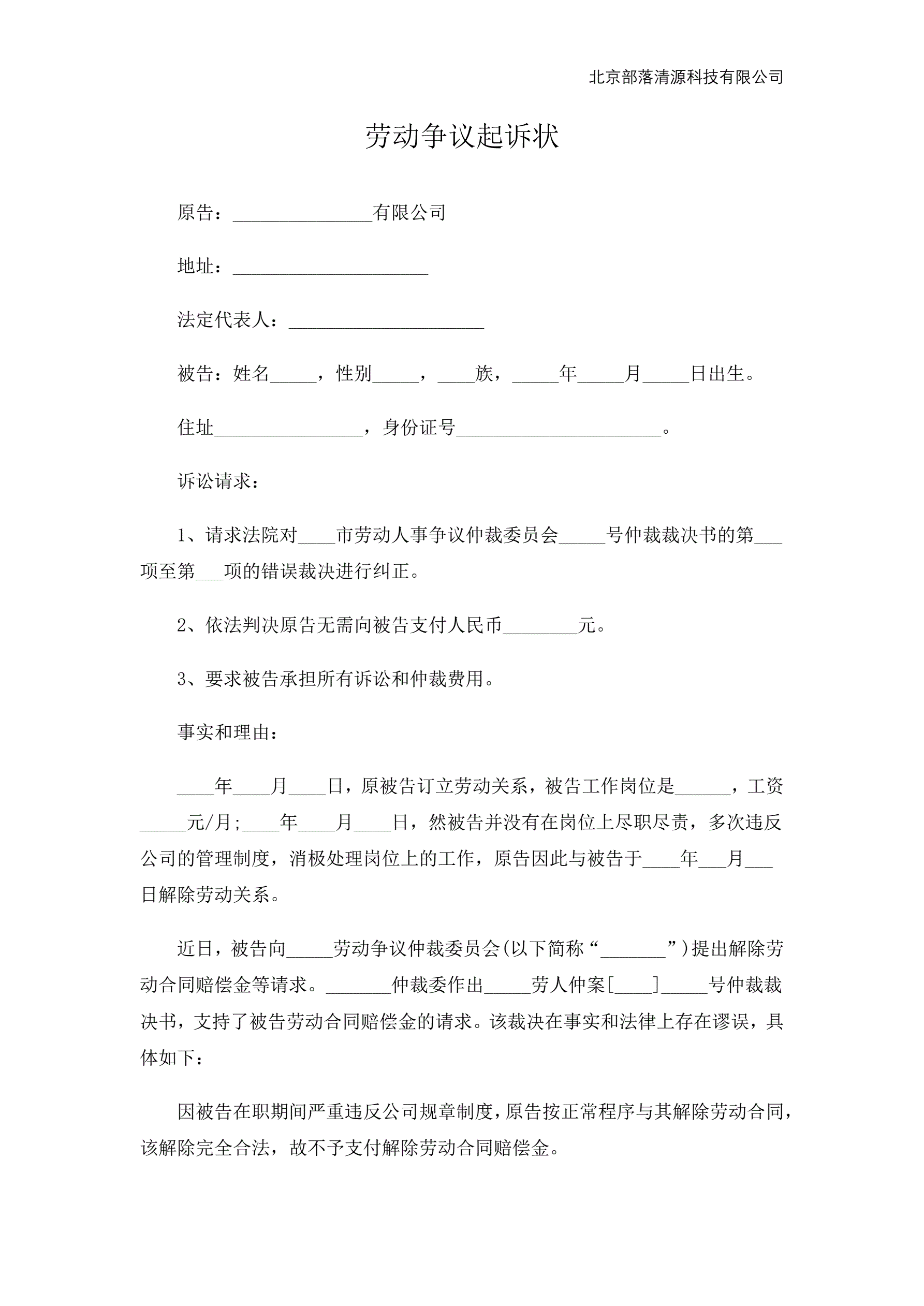 劳动争议起诉状