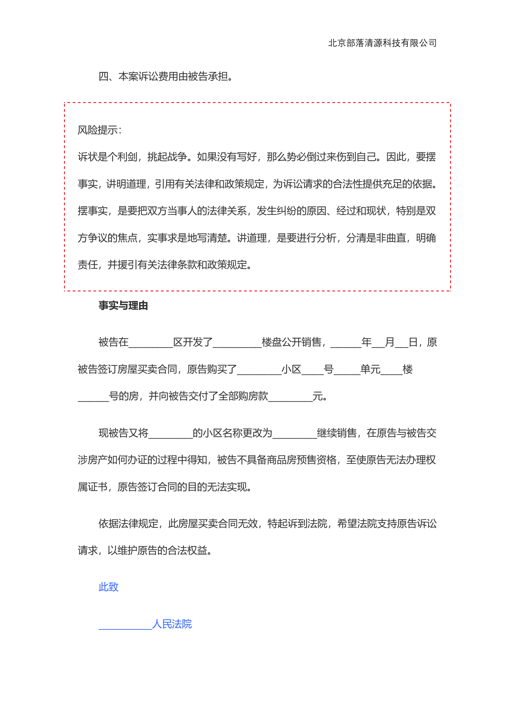 合同无效起诉状范本