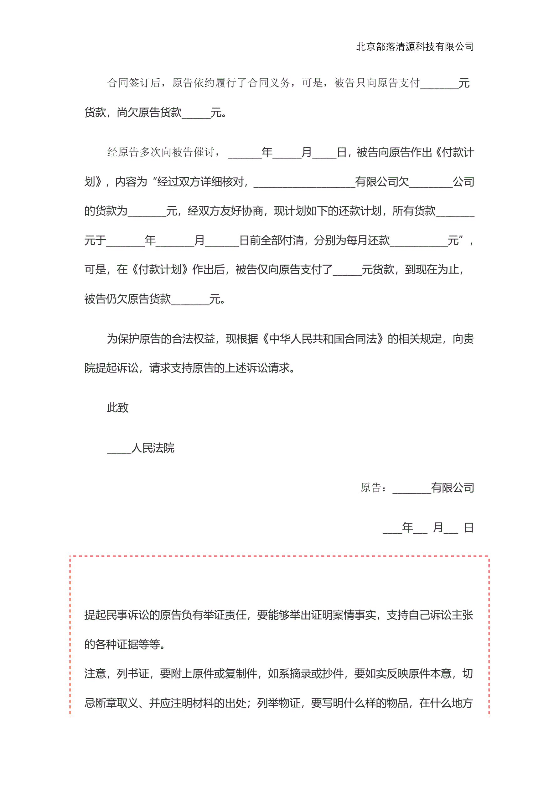 合同纠纷起诉状范本