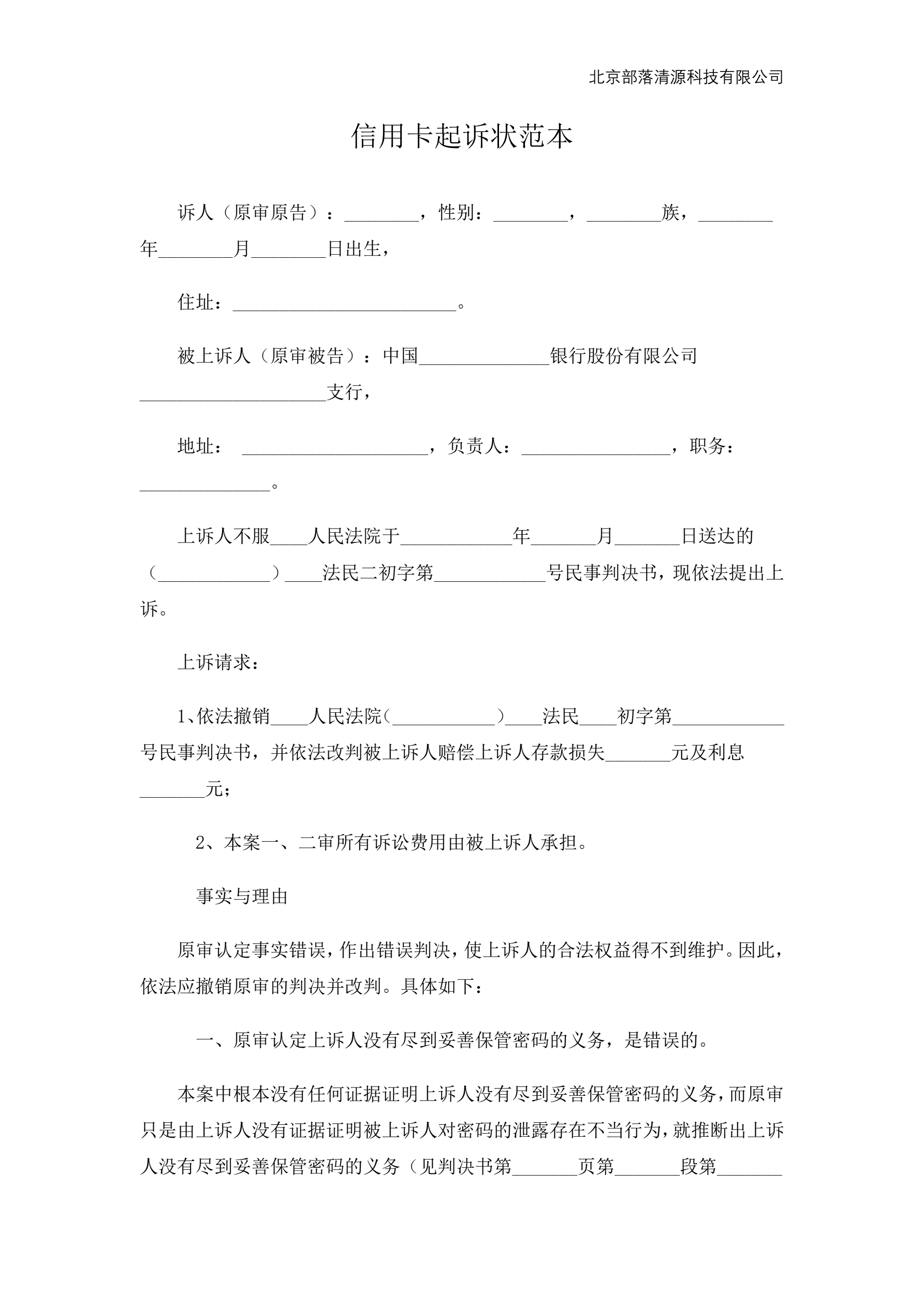 信用卡起诉状范本