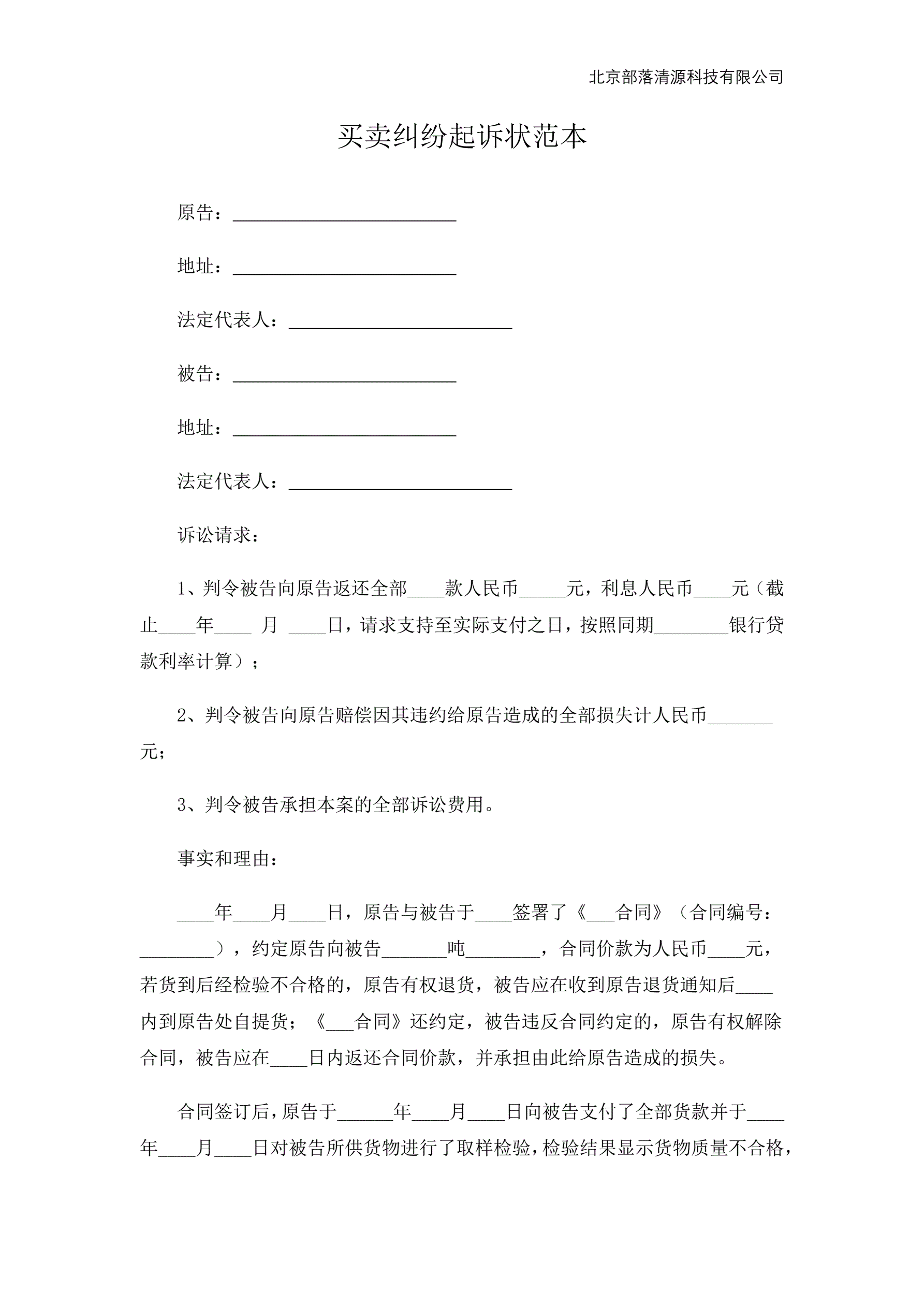 买卖纠纷起诉状范本