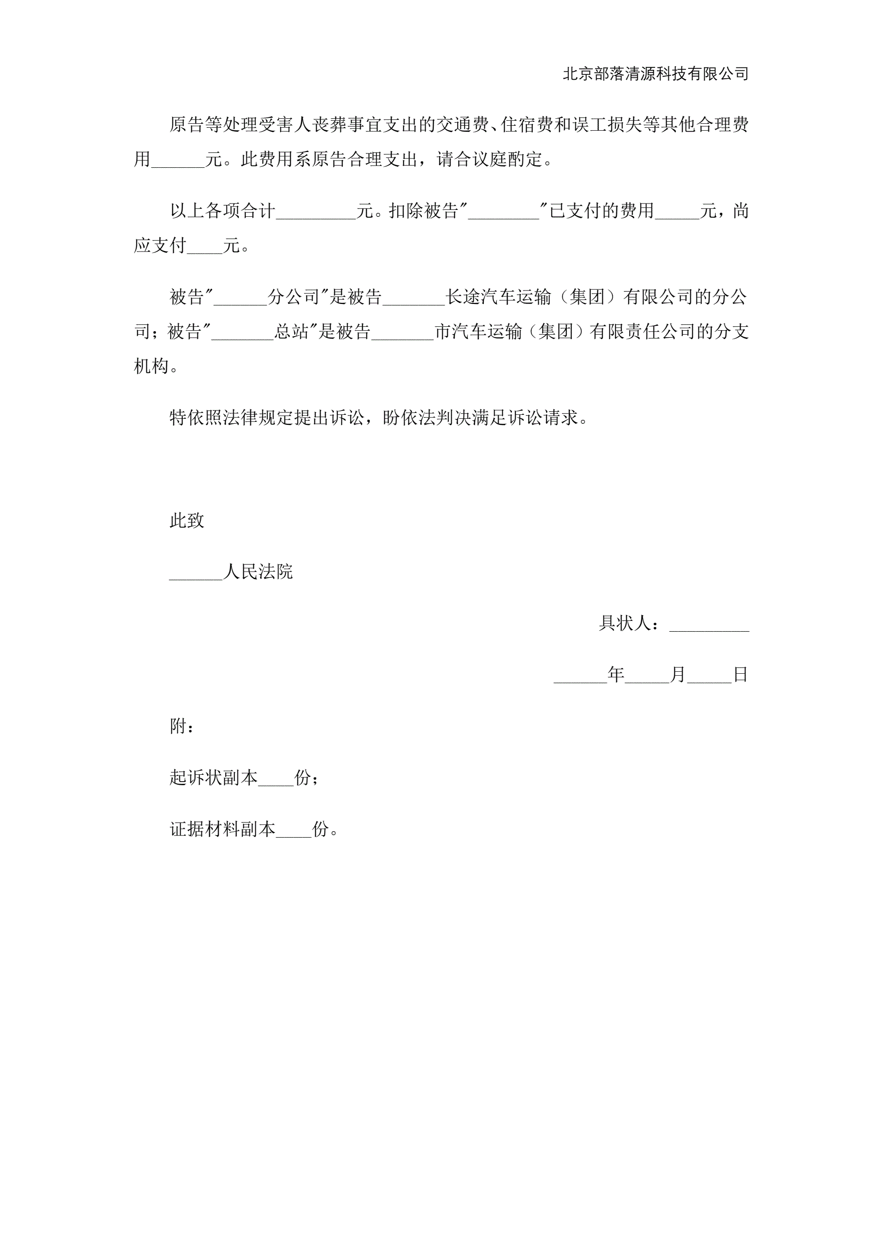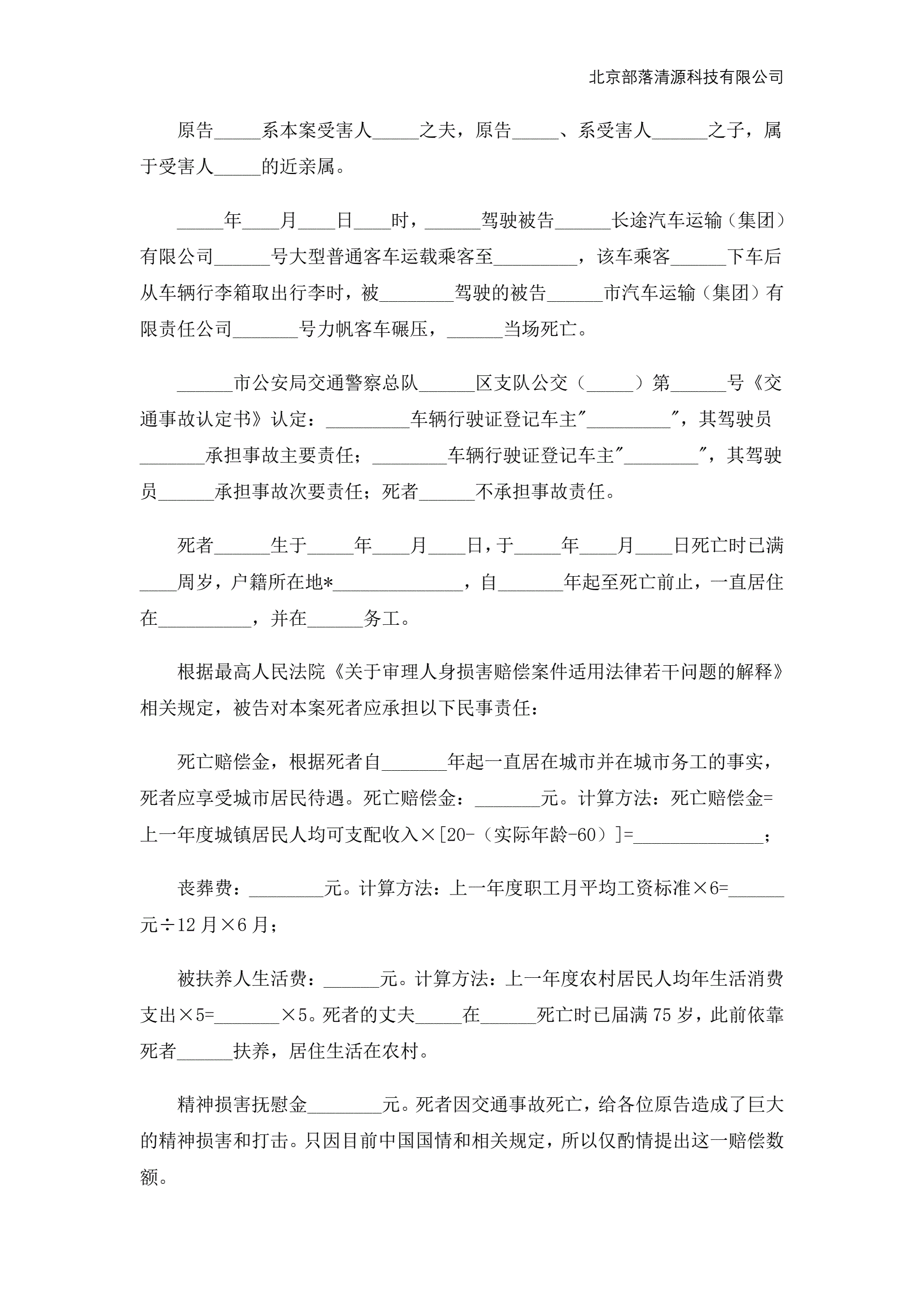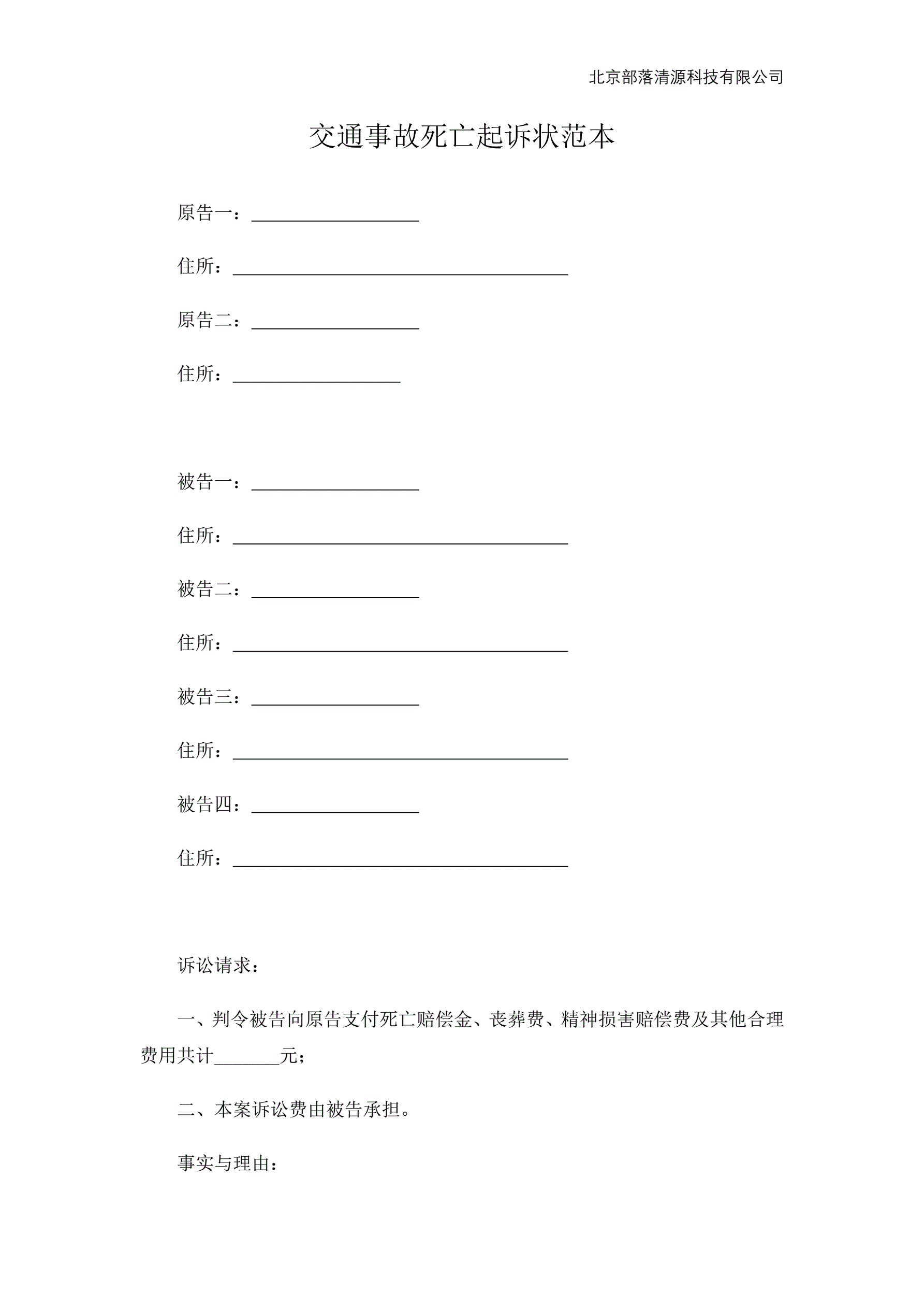交通事故死亡起诉状范本