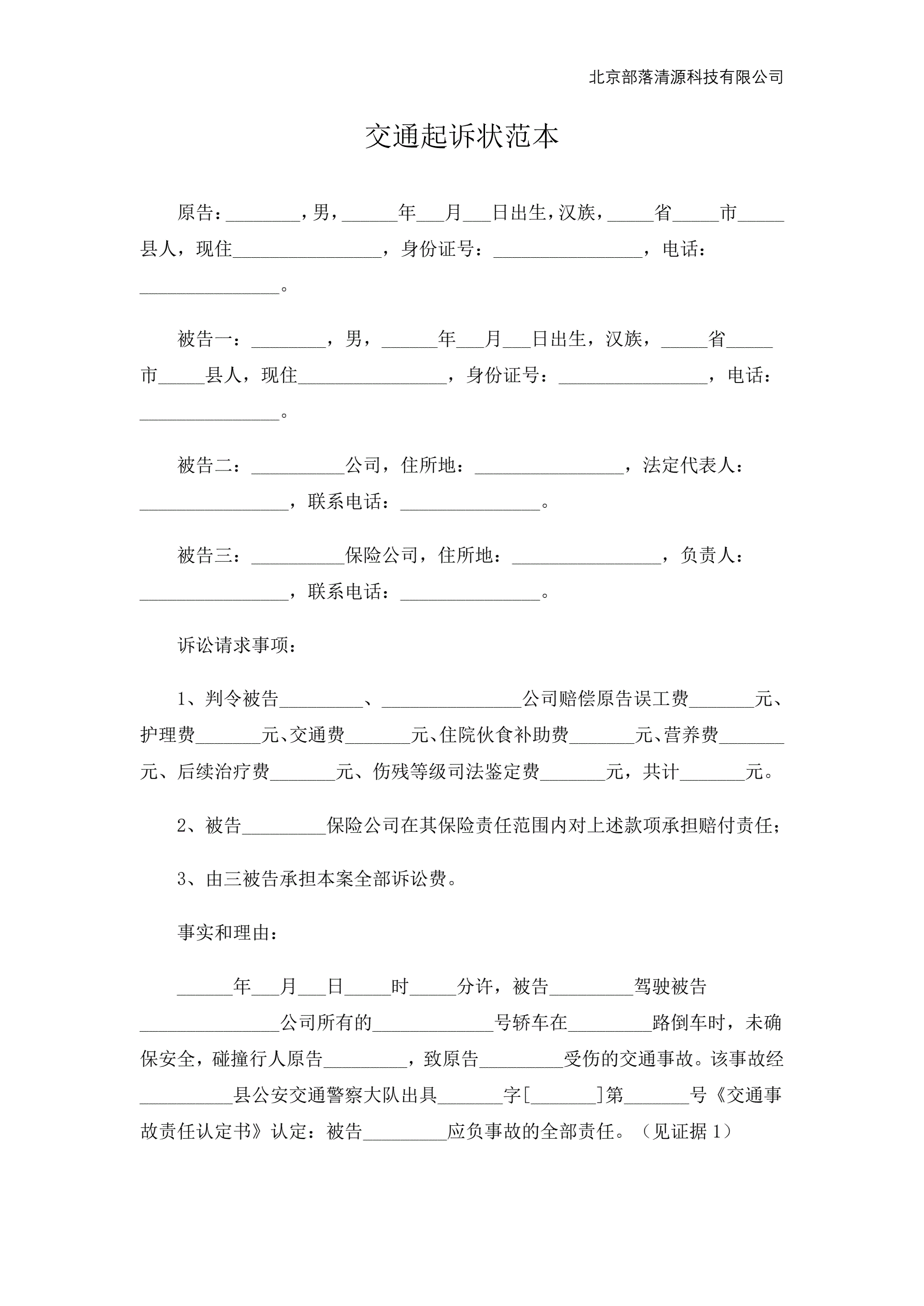 交通起诉状范本