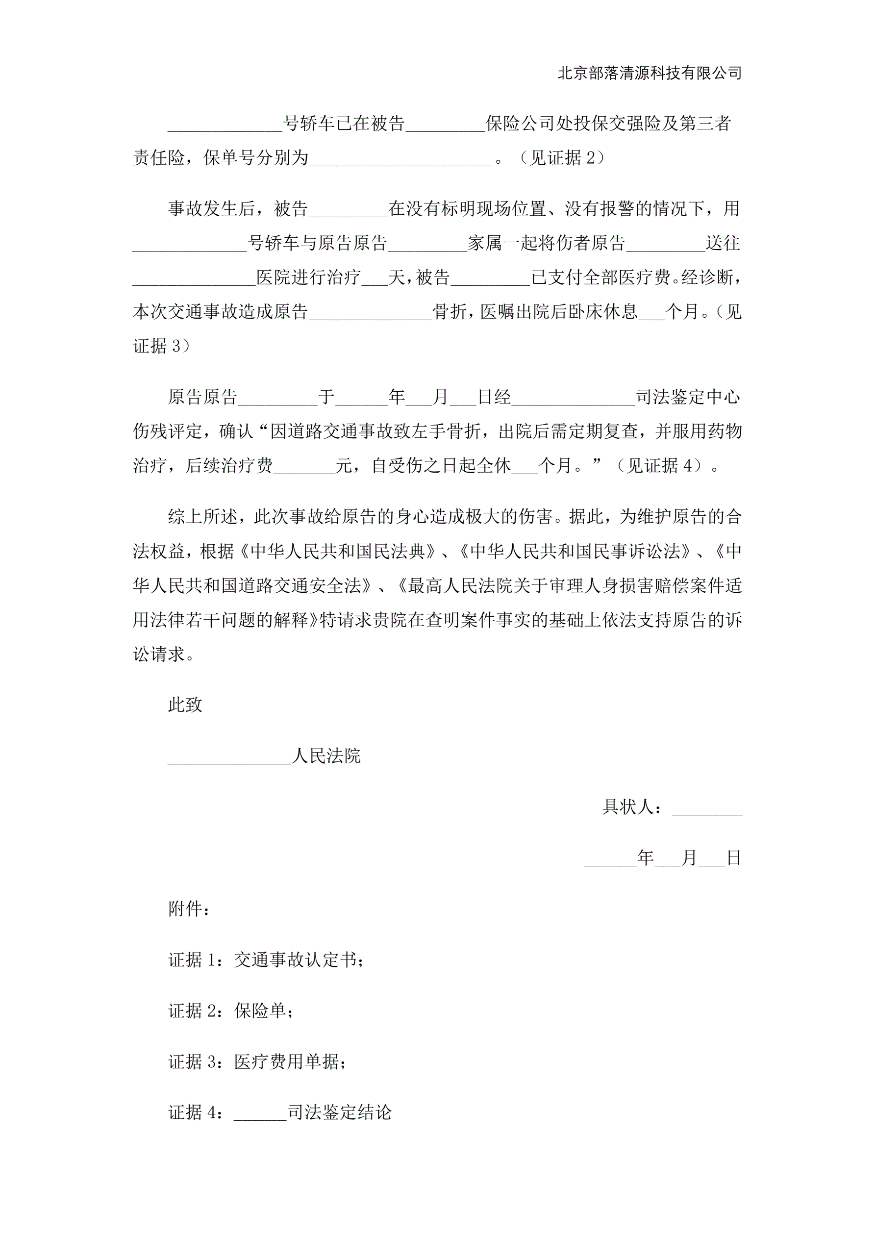 >交通起诉状范本