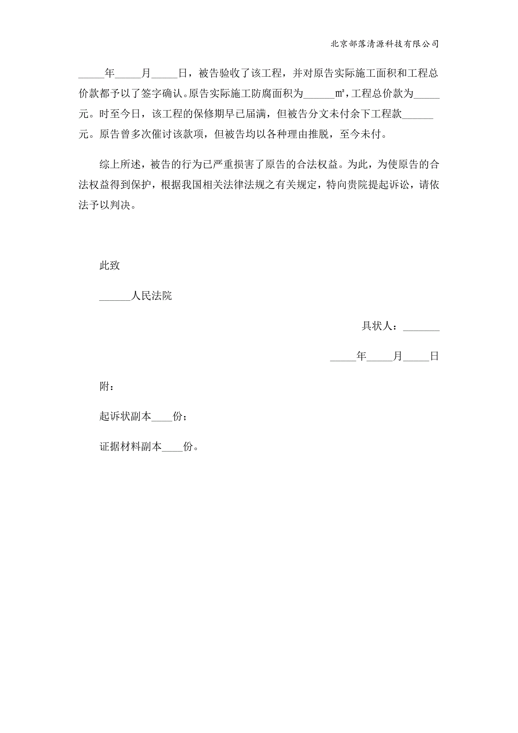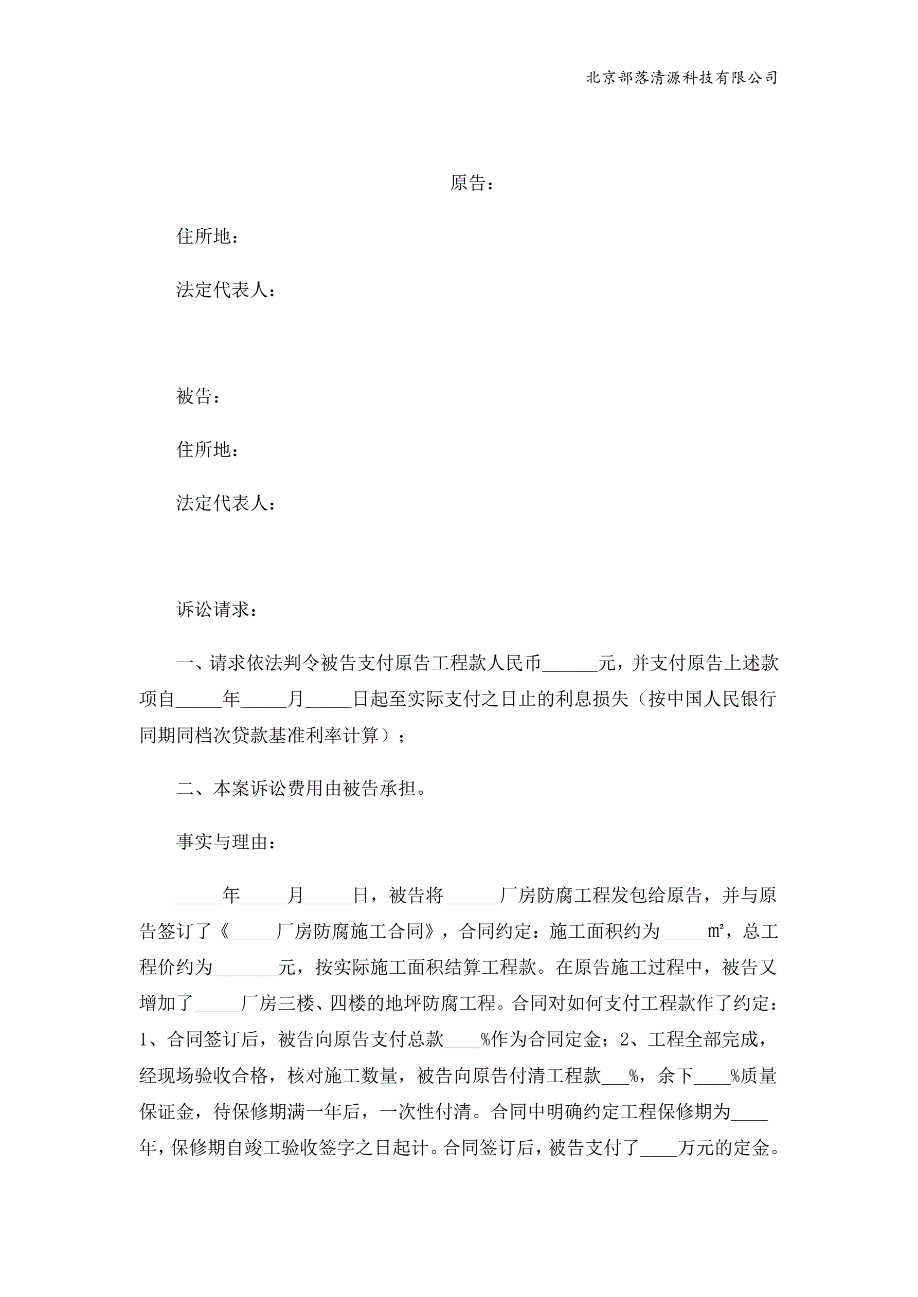 装修合同纠纷起诉状范本