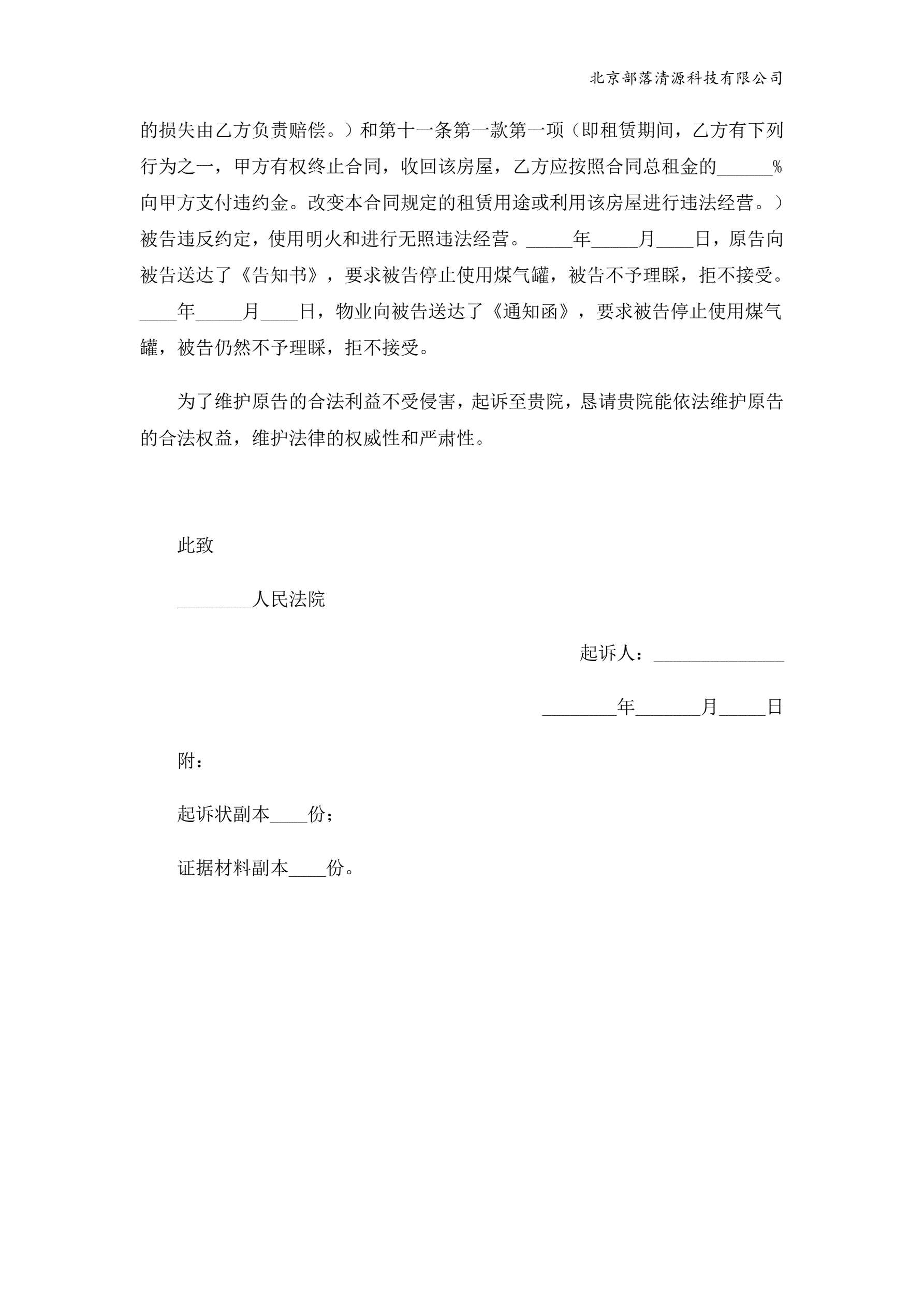 租房合同纠纷起诉状范本
