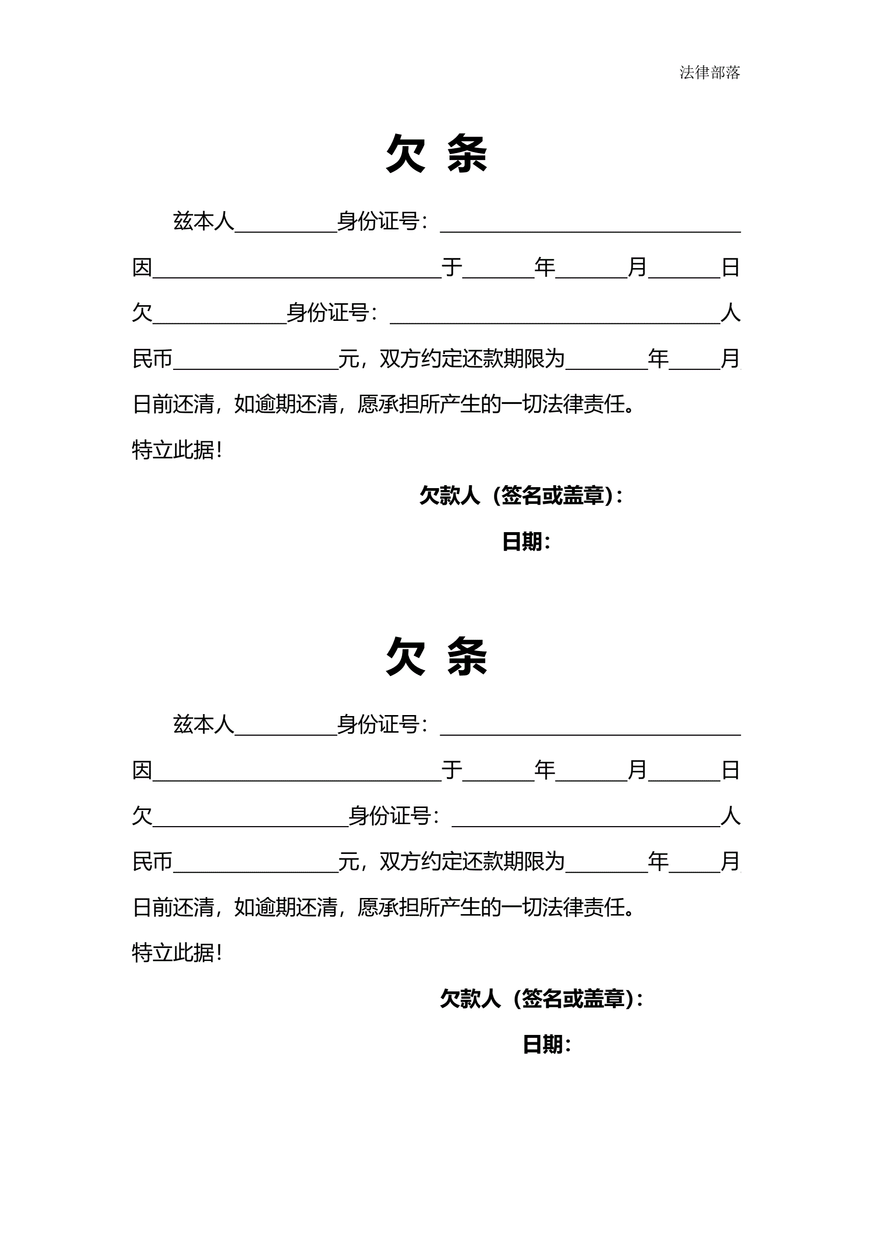 >欠条通用版