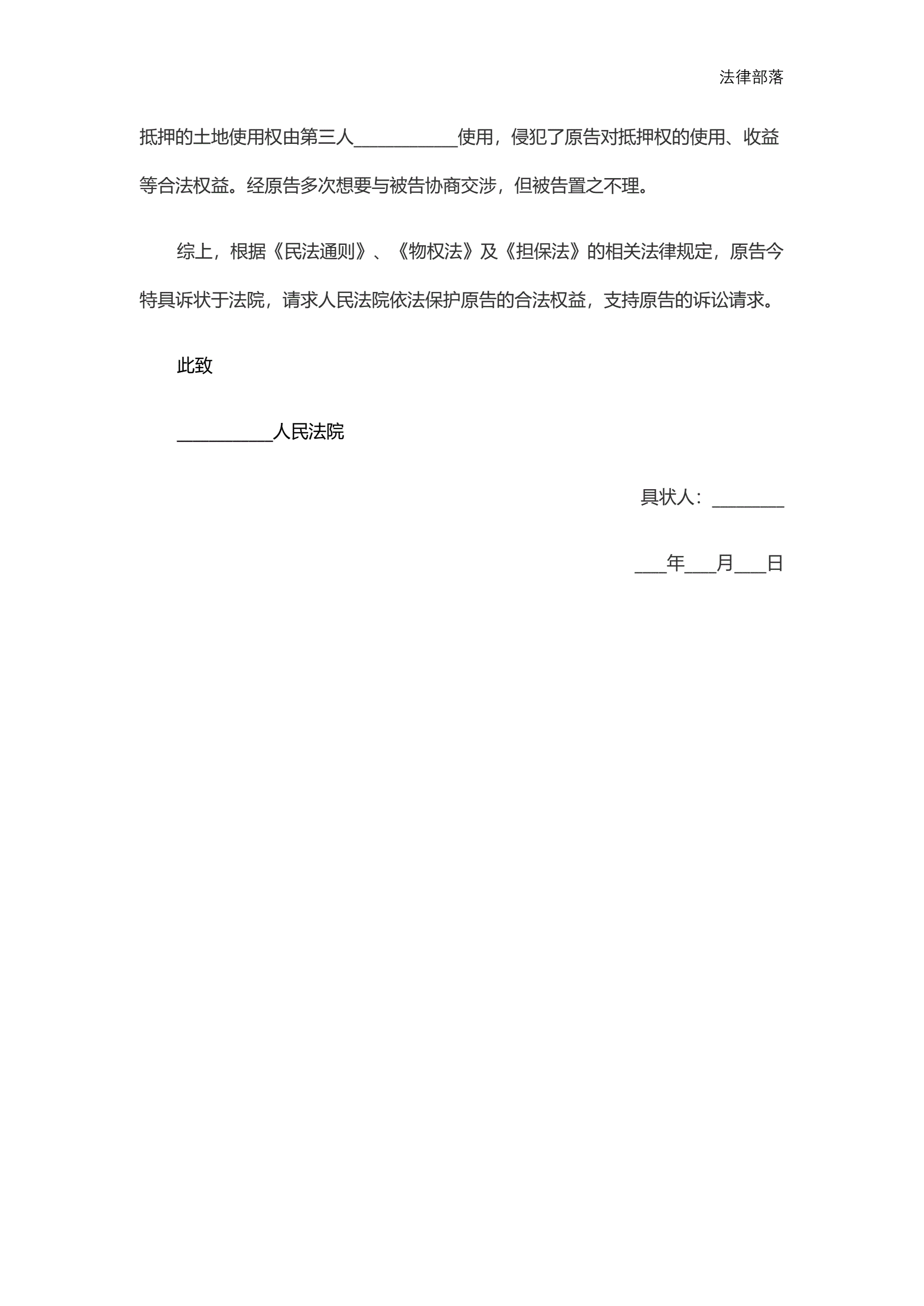 担保合同纠纷起诉状范本
